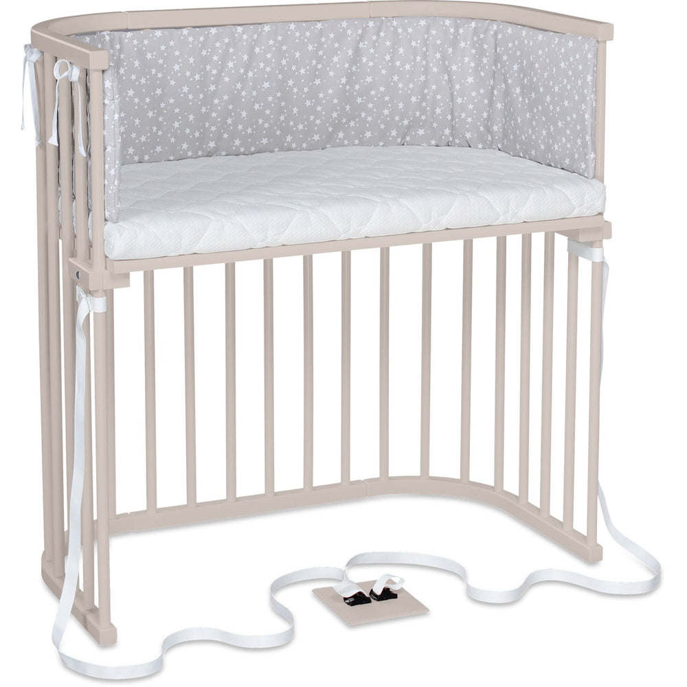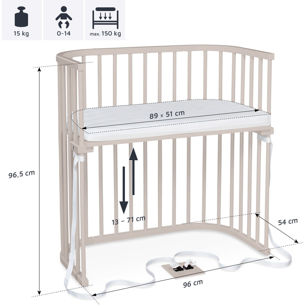 Ideal for nurturing closeness and designed for functionality, this award-winning co-sleeper aligns with both midwives' and lactation consultants' recommendations, bringing comfort and security to your bedtime routine. Whether upgrading your nursery or preparing for parenthood, the babybay® Boxspring Co-Sleeper is your ultimate bedtime companion for those first precious years. Materials: beech wood