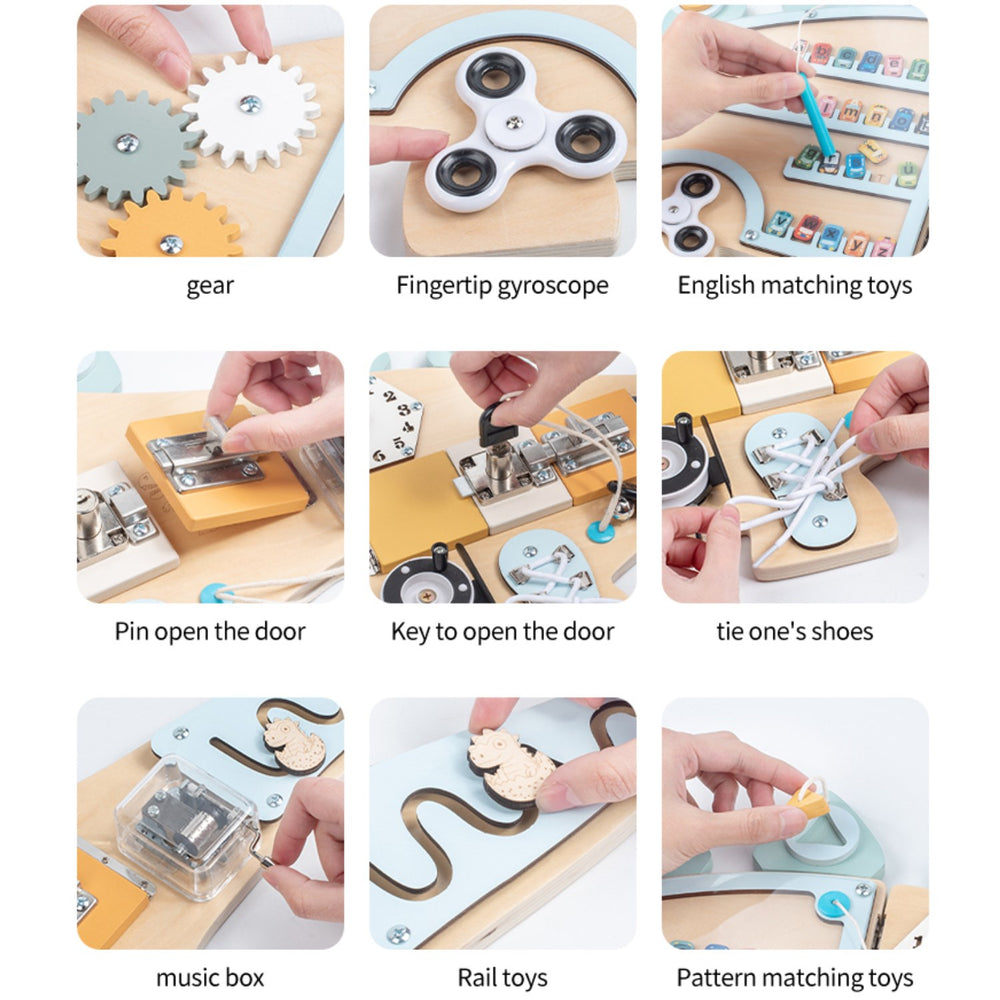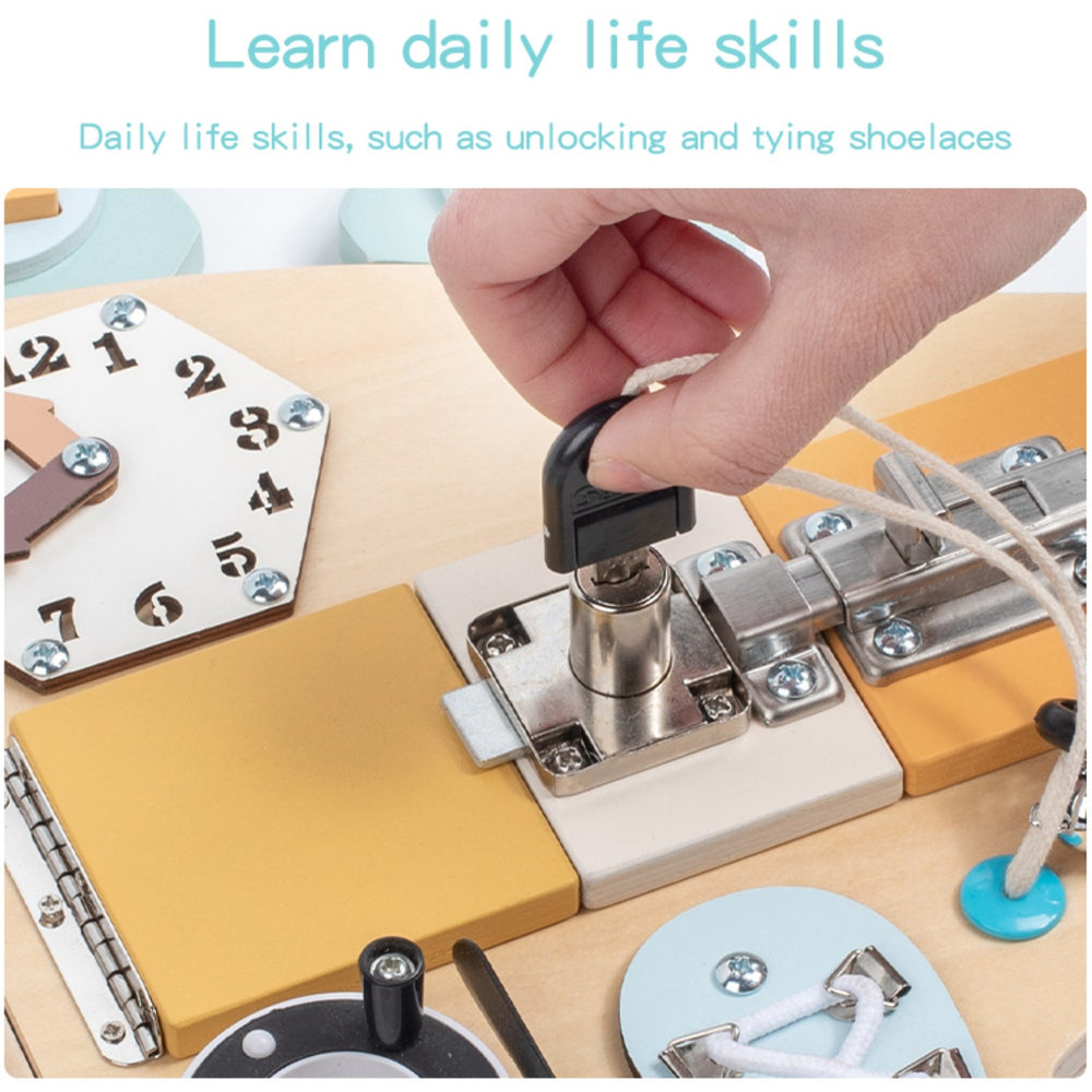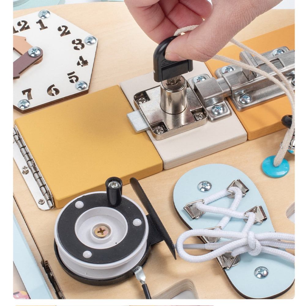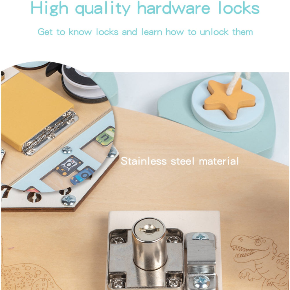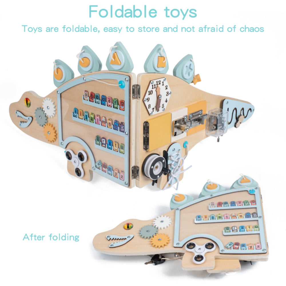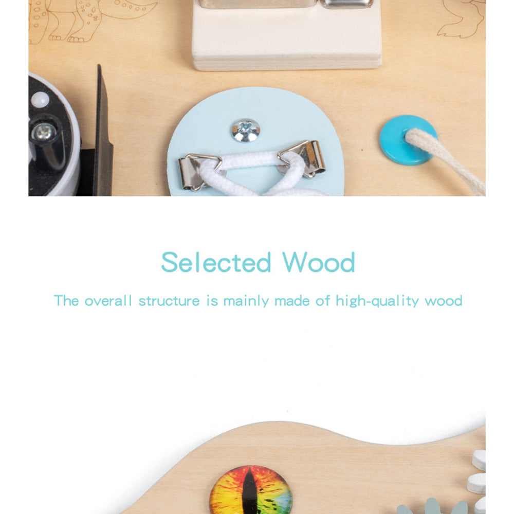Introducing the HEMMINGSEN Kids Nature Dino Activity Board, the perfect blend of fun and learning for young explorers! This dinosaur-shaped board features interactive elements like gears, locks, a clock, and shoelaces, promoting motor skills, creativity, and problem-solving abilities in children. Ideal for ages 3 and up, it's designed for easy handling, safe play, and simple storage. Engage your child in hours of screen-free educational activity that entertains as it teaches! Age: From 3 to 6 years old Materials: birch tree Measurements: 88 x 36 x 8 cm Washing instructions: Remember to follow the instructions for use Certifications: CE Extra: 23 exciting elements for exploration, included with both standing and hand mounting options, painted with child-friendly water-based paint