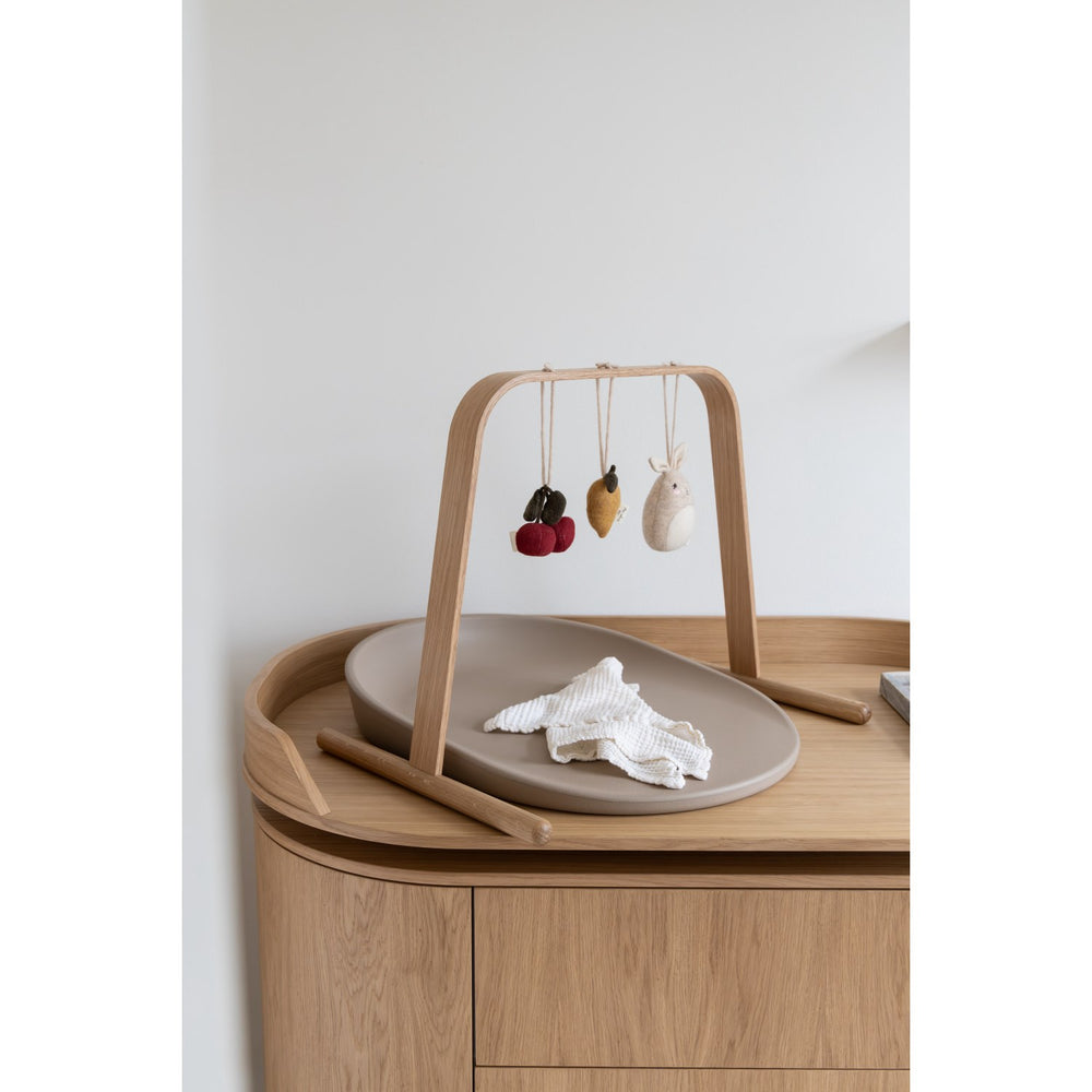 Introducing the KAS Kopenhagen Natural Oil Kas Activity Rack in Neutral Oil, the perfect blend of safety and style for your little one's playtime. Crafted from natural, high-quality wood, this activity stand features rounded shapes and a streamlined design with no visible screws, ensuring a safe and sleek environment. Tested and approved lacquer according to EN 71-3:2019 + A1:2021 standards guarantees that every surface is safe for child interaction.