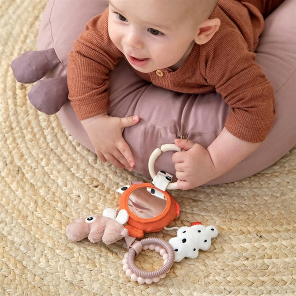 Introduce your little one to a world of wonder with the Done by Deer Activity Mirror in Happy Clouds Papaya. This delightful toy features a balloon rattle, a tactile activity mirror, and characters like the softly textured Ozzo, cloud with dots, alongside two textured rings and fun tags, all designed to stimulate sensory development. Perfect for on-the-go fun, it easily attaches to prams, strollers, or activity centers. The cheerful papaya colors and engaging clouds pattern not only captivate your baby’s attention but also promote curiosity and interaction. Ideal for nurturing young minds, this toy blends safety with enchanting educational content, making it a perfect choice for infants exploring their burgeoning world.