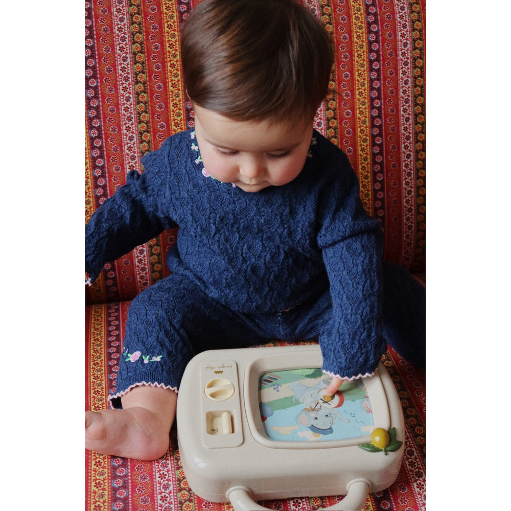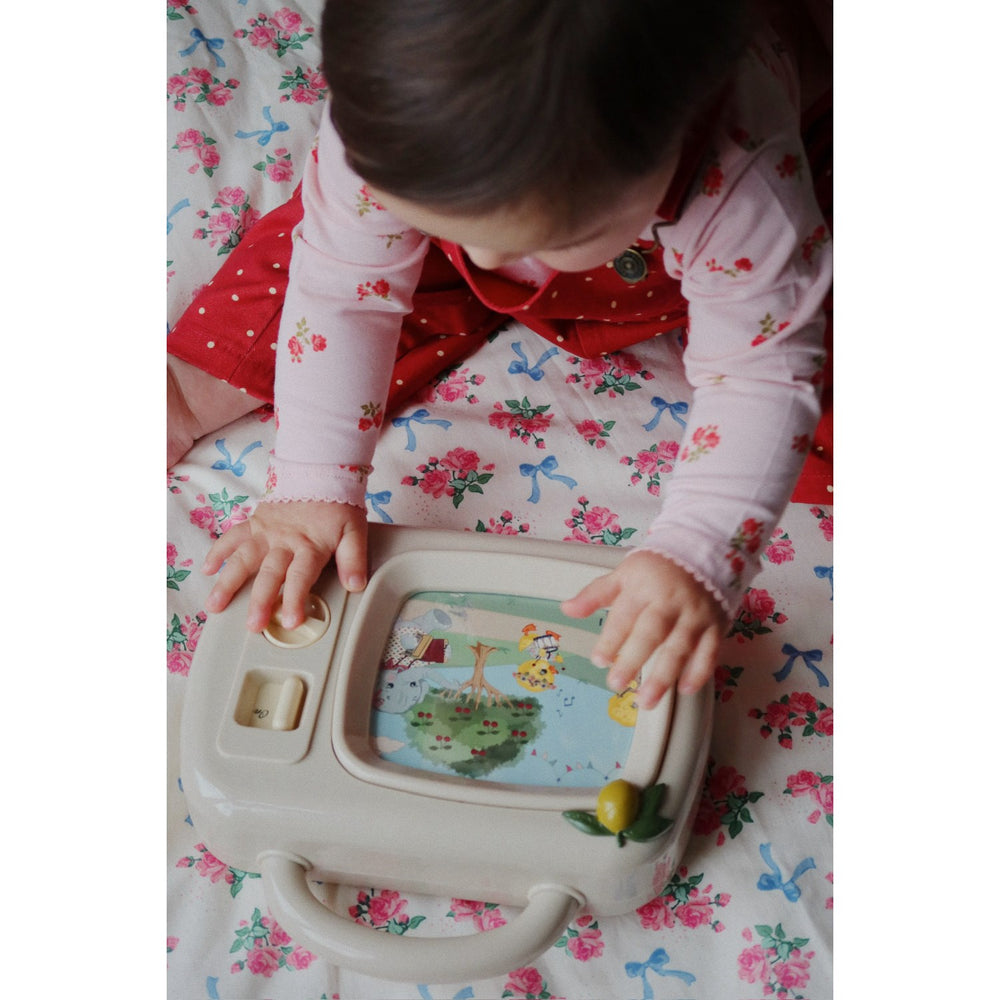 Delight your little one with the Konges Sløjd Lemon My Melody TV, a charming musical mobile designed for infants. This enchanting toy features a moving screen activated by a simple turn of a knob, displaying captivating pictures that move in harmony with serene melodies. Perfect for young children, it combines safety with educational benefits, fostering sensory development through sight and sound. Compact and easy to store, it ensures hassle-free maintenance for busy parents. Ideal for soothing and engaging your baby in a delightful auditory and visual experience.