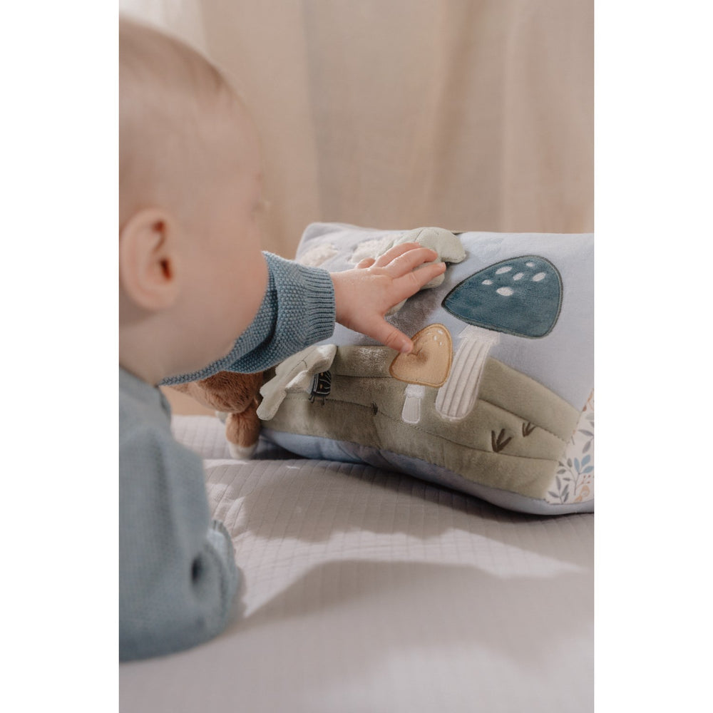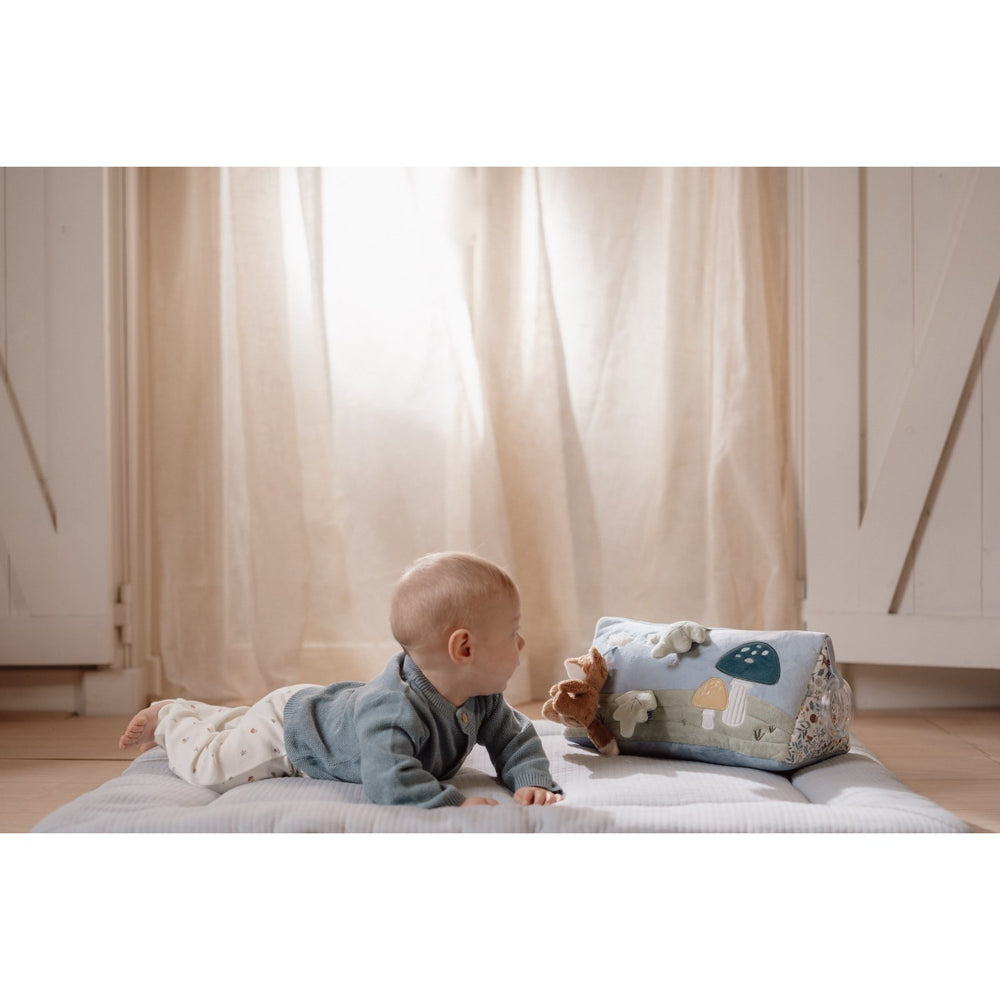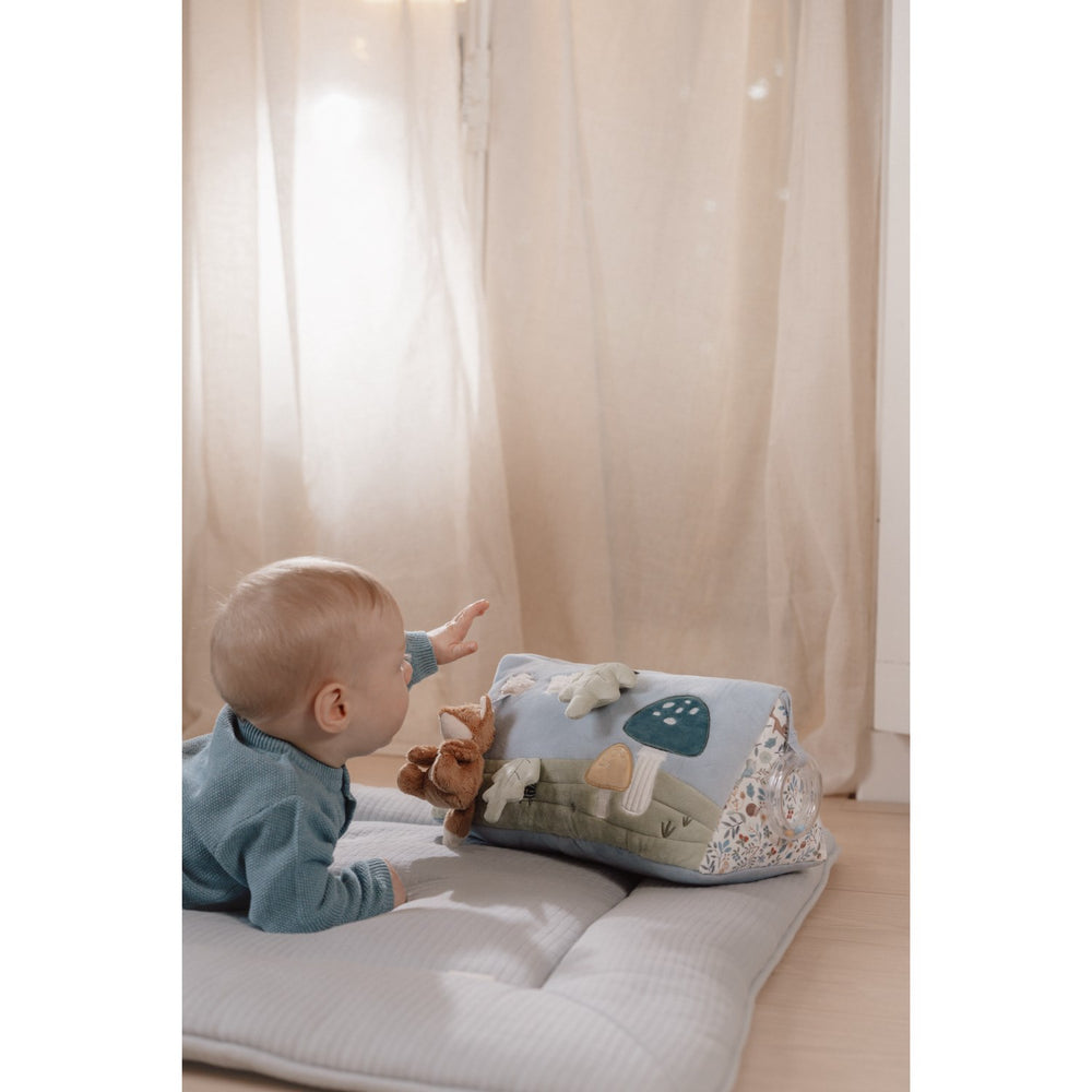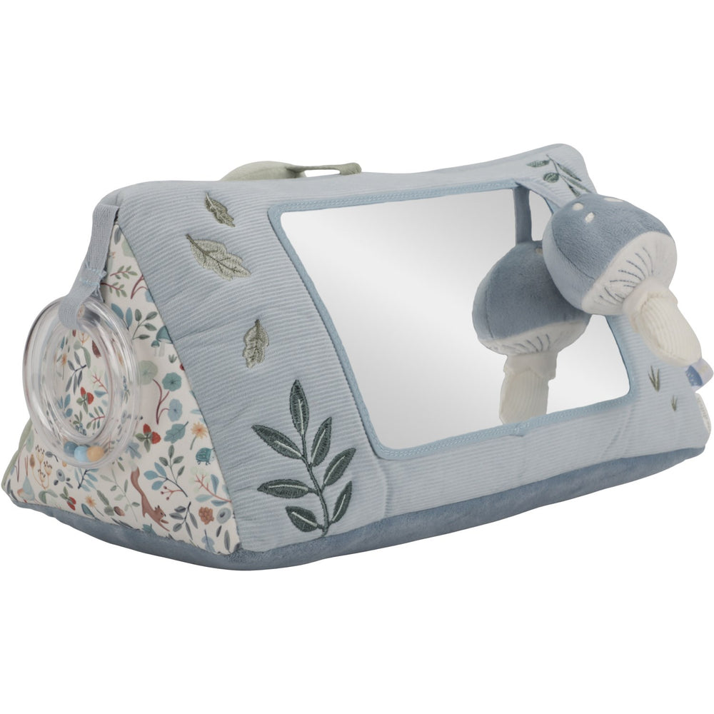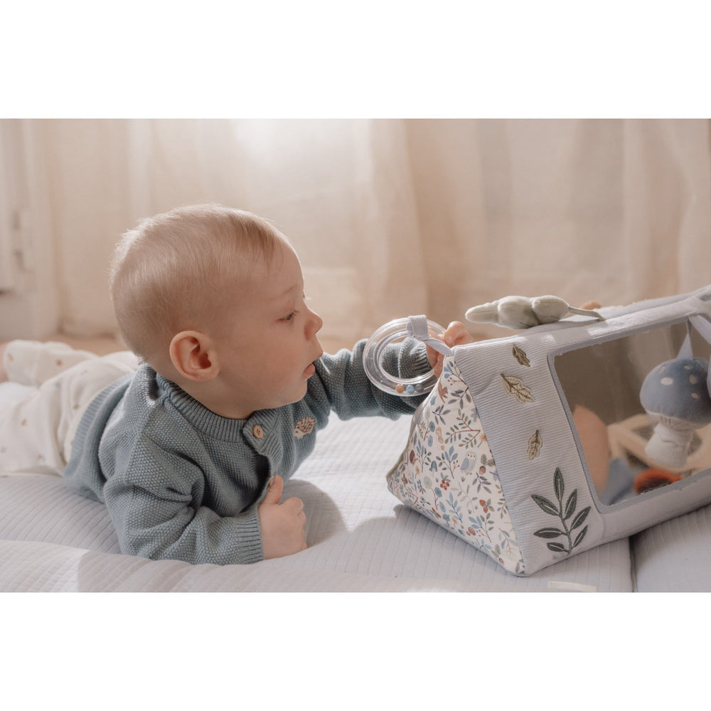 Embark on a fun-filled journey with the Little Dutch Forest Friends Blue Activity Triangle, the ideal playmate for your baby's tummy time! This lively activity toy is designed not just for play, but to stimulate your child's curiosity and development. It includes an array of features like crackling leaves and a captivating little mirror, perfect for self-discovery and sensory exploration.