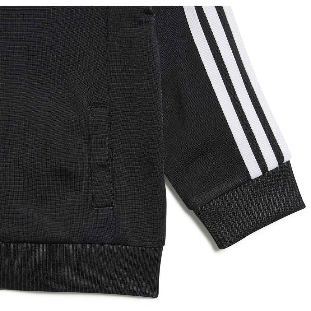 - Extras: Top: Trefoil logo, embroidered on chest, 3 stripes on jacket sleeves. Bottom: trefoil logo, embroidered on hip, 3 stripes along legs