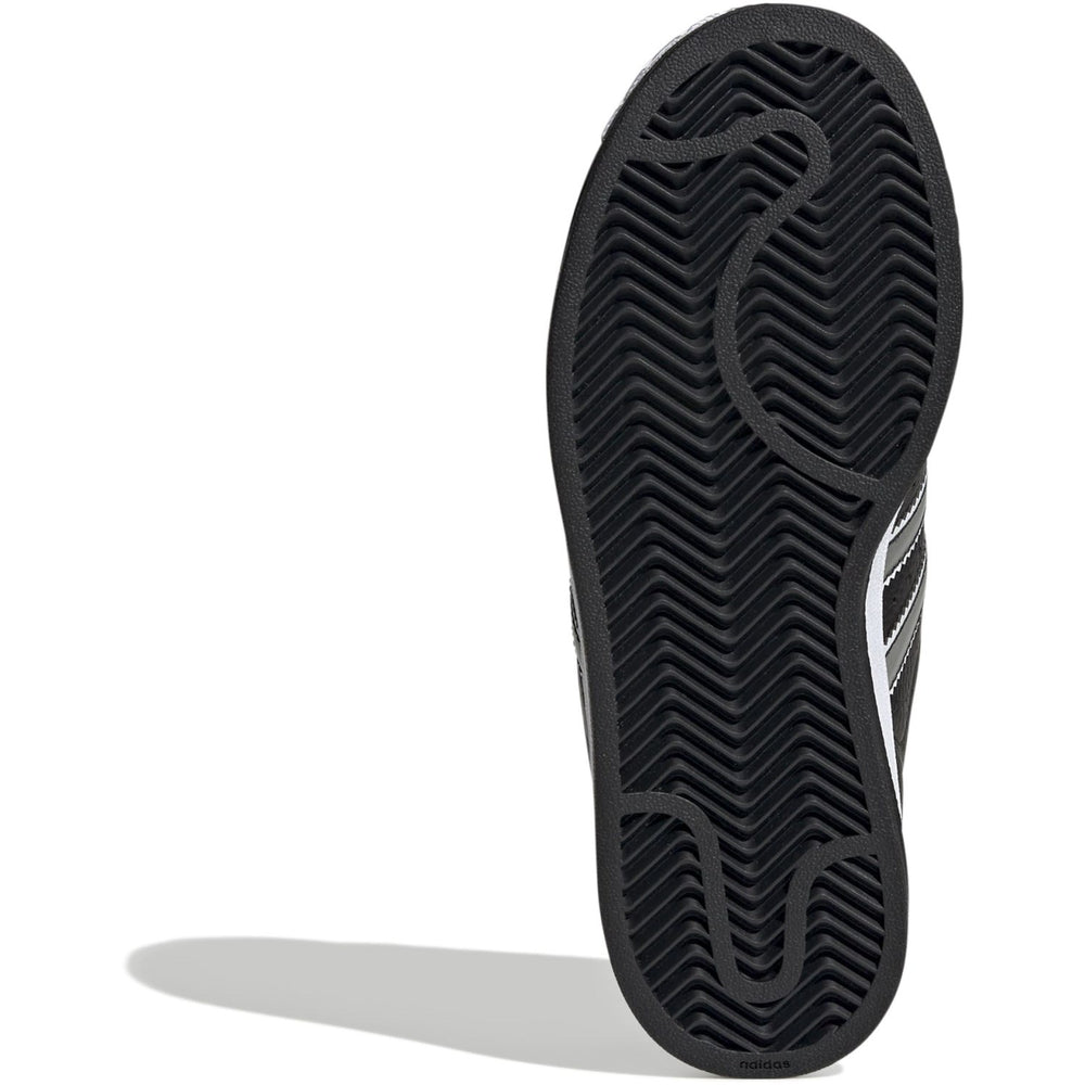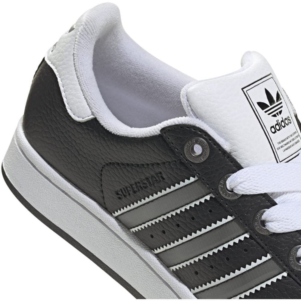 Step into timeless style with the adidas Originals Core Black/Matte Silver/Ftwr White Superstar II J Sneakers. Crafted with a sleek synthetic upper and the iconic shell toe, these sneakers are a nod to classic '90s streetwear. The distinctive serrated 3-Stripes add a dash of rebellious flair, while added padding in the tongue and heel ensures all-day comfort. Ideal for young adventurers, these sneakers promise durability and style for any occasion. Unleash the spirit of a new generation with every step.