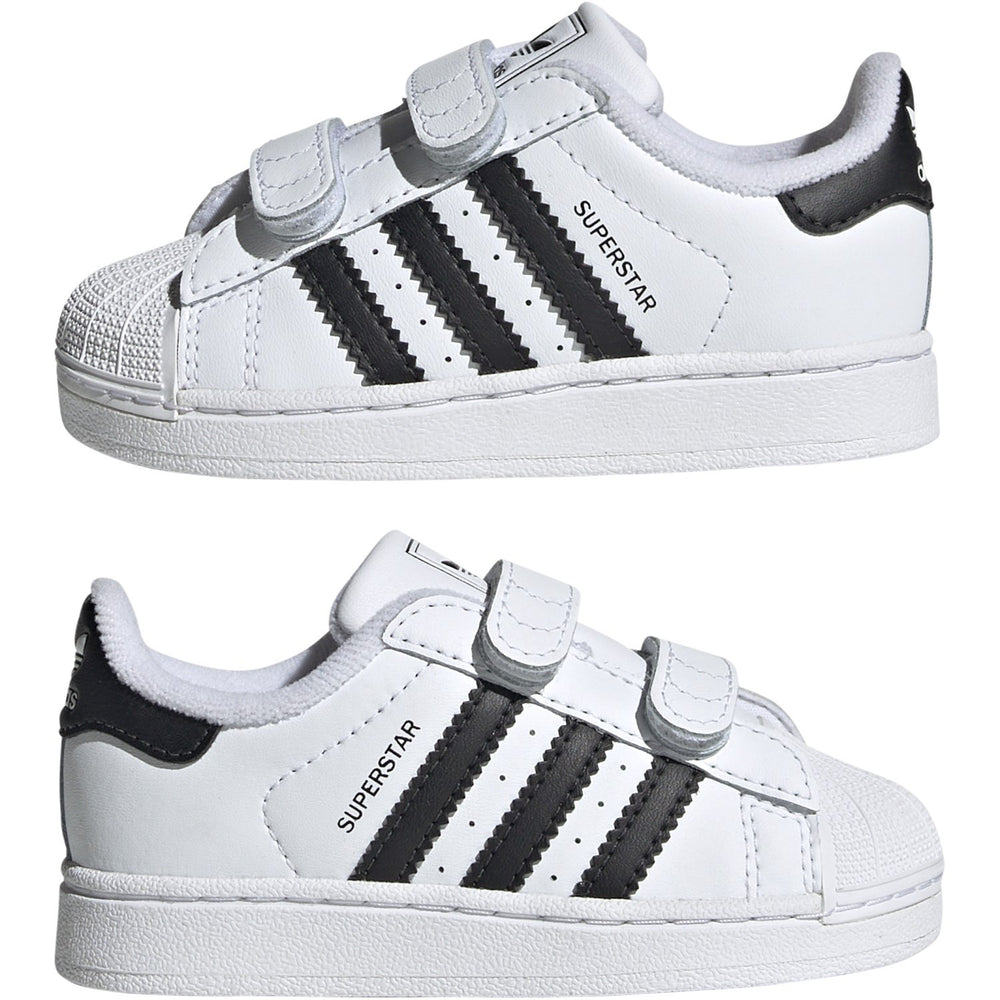 Introduce your little one to classic style with the adidas Originals Superstar II CF I Sneakers. Crafted from smooth leather with a standout shell toe, these sneakers feature easy-to-use hook-and-loop straps for quick dressing. Their design combines crisp Ftwr White with bold Core Black accents, ensuring your toddler looks sharp while being utterly comfortable, thanks to the padded tongue and moulded sockliner. Perfect for both budding walkers and playful tots, these sneakers promise ease of wear and care, making every step a stylish, joyful one. Ideal for achieving that timeless, sporty look with every outfit.