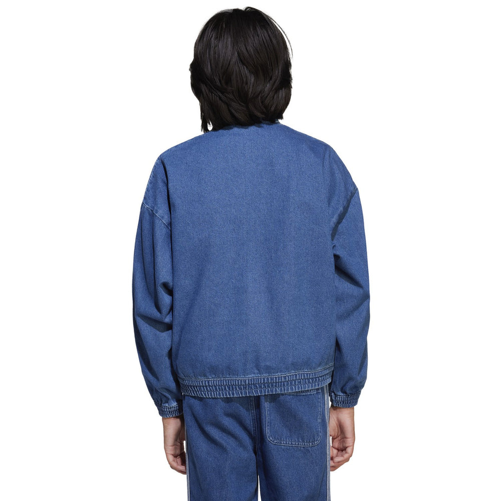 Elevate your child's wardrobe with this adidas Originals medium blue denim jacket. The design includes a smart half-zip at the front and a high collar, perfect for cooler days. Three iconic adidas stripes adorn the sleeves, while a handy kangaroo pocket offers space for small items. The sleeve cuffs and bottom hem are provided with elastic, which ensures a snug but comfortable fit. The durable material of this jacket ensures a long life even with frequent use and it is easy to maintain. A must-have for the active child who appreciates comfort and style.