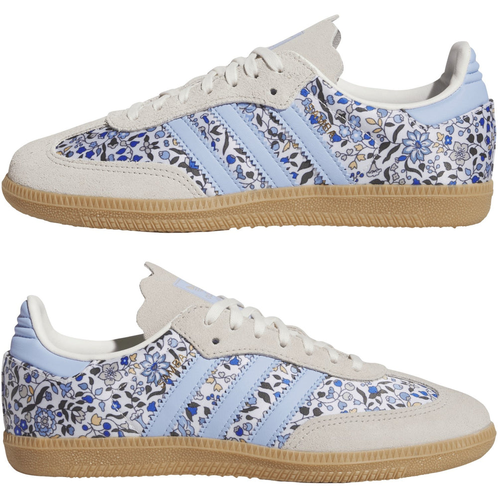 Discover the charm of the adidas Originals Samba OG J Sneakers, a delightful collaboration with Liberty London. These shoes blend timeless style with contemporary flair, featuring an all-over floral print inspired by the iconic British store known for its exquisite patterns. With classic serrated 3-Stripes and the iconic T-toe design, these sneakers offer a nod to their sporty origins while embracing modern aesthetics. Crafted for comfort and durability, they're perfect for keeping up with your child's active lifestyle. The unique mix of supplier colour, off-white, and gum 3 tones ensures these sneakers stand out in style, making them an essential addition to any young wardrobe. Perfect for various activities, these sneakers promise both comfort and a dash of sophistication. Closure: Laces Fit: Regular Materials: Upper: Synthetic, Textile, Lining: Textile, Sole: Rubber Extra: Leather 3-stripes with "SAMBA" wording as quarter branding signoff. Classic Originals tongue branding. Liberty London and Adidas Trefoil branding on the sockliner.