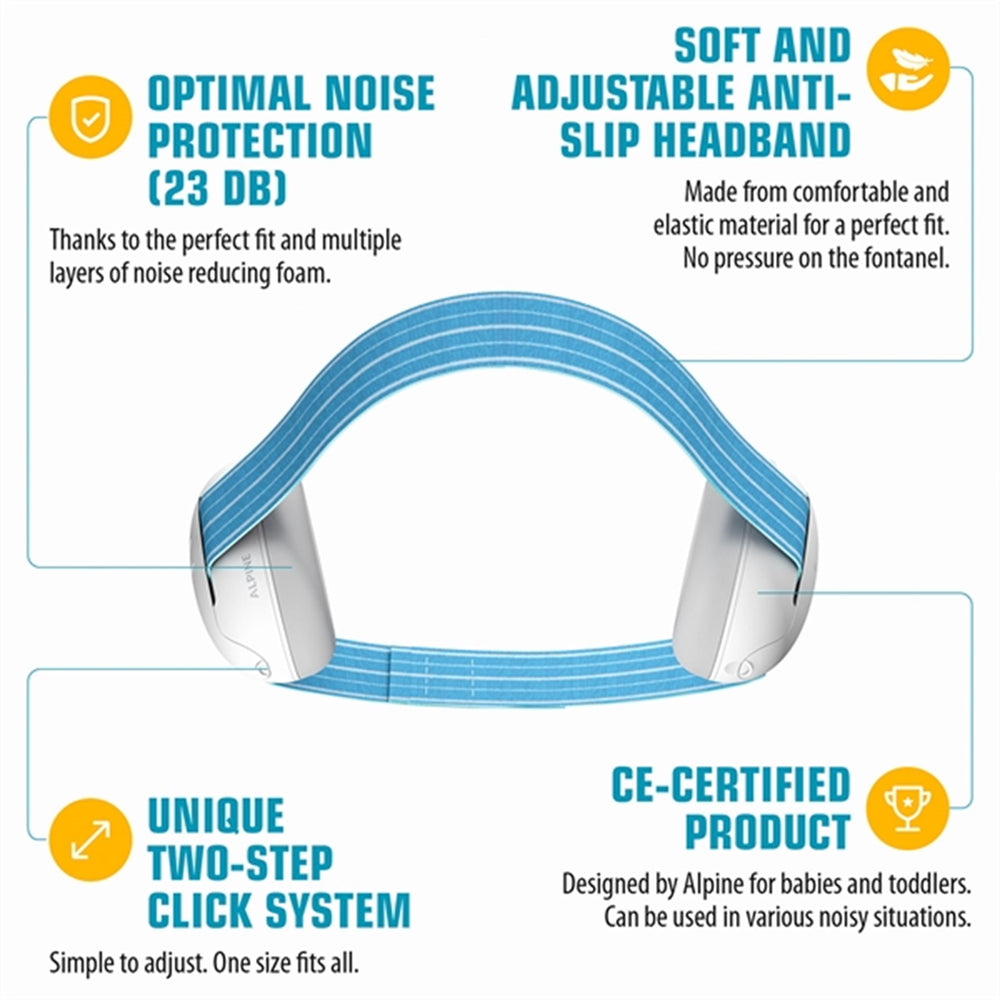 Explore the wonderful world of tranquility with the Alpine Muffy Baby Earmuffs in Blue, expertly designed to safeguard your infant's hearing. These earmuffs are certified with top safety approvals, boasting easy usage and comfort, tailored to fit the tender needs of young ones. Ideal for reducing noise during various activities or outings, ensuring a serene environment for nap times. Durable and simple maintenance further enhance their appeal, making them a practical addition to your child's essentials. Perfect for keeping your little one entertained and stimulated in bustling environments.