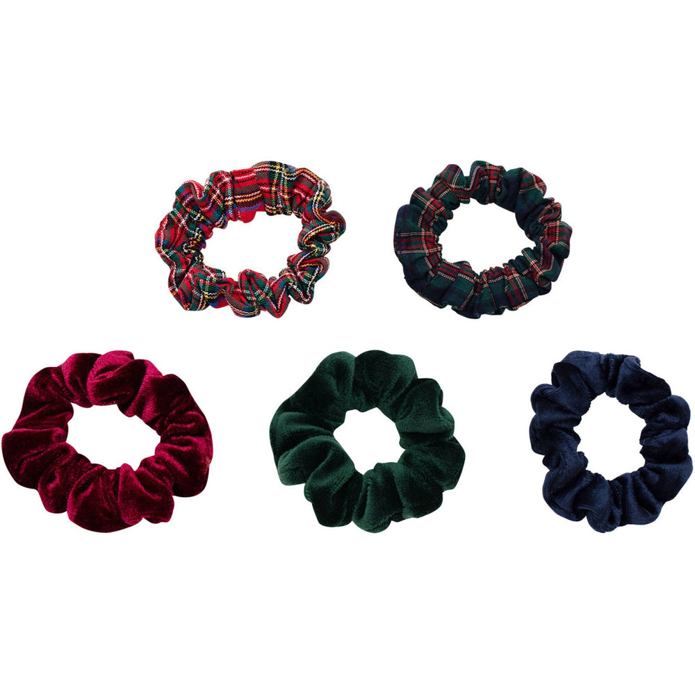 Brighten up your little one's hairdo with the Mimi & Lula 5 Scrunchies set from the Mixed Pony Pals collection. Crafted with soft tartan fabric and luxurious dark velour, these scrunchies offer delightful comfort and a snug fit. The charming designs, including classic tartan and elegant velour, add a fun twist to any outfit. Ideal for everyday wear and special occasions, these scrunchies ensure a gentle grip without tugging at hair, making them perfect for children's delicate locks.