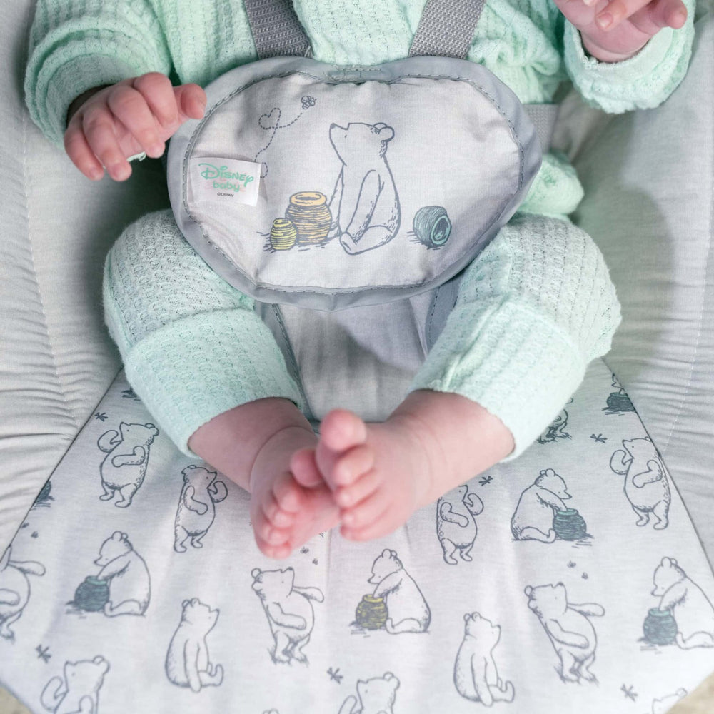 Delight your little one with the enchanting Bright Starts Disney Baby Winnie the Pooh Classic Pals Milestone Swing, perfect for babies up to 9 months or 20 lbs. This thoughtfully designed swing features two recline positions and a secure 5-point harness to maximize both safety and comfort. It adapts effortlessly to your growing baby, with engaging toys like a crinkle Tigger and a spinning mirror that transition from overhead to hands-on play as they develop. Enjoy the convenience of 6 variable swing speeds with TrueSpeed technology and timers setting up to 90 minutes, ideal for soothing or entertaining your child. Plus, it's a breeze to maintain with easily removable fabrics and folds compactly, making it perfect for storage or travel. Certified for safety and quality, it's a delightful addition to any baby's day.