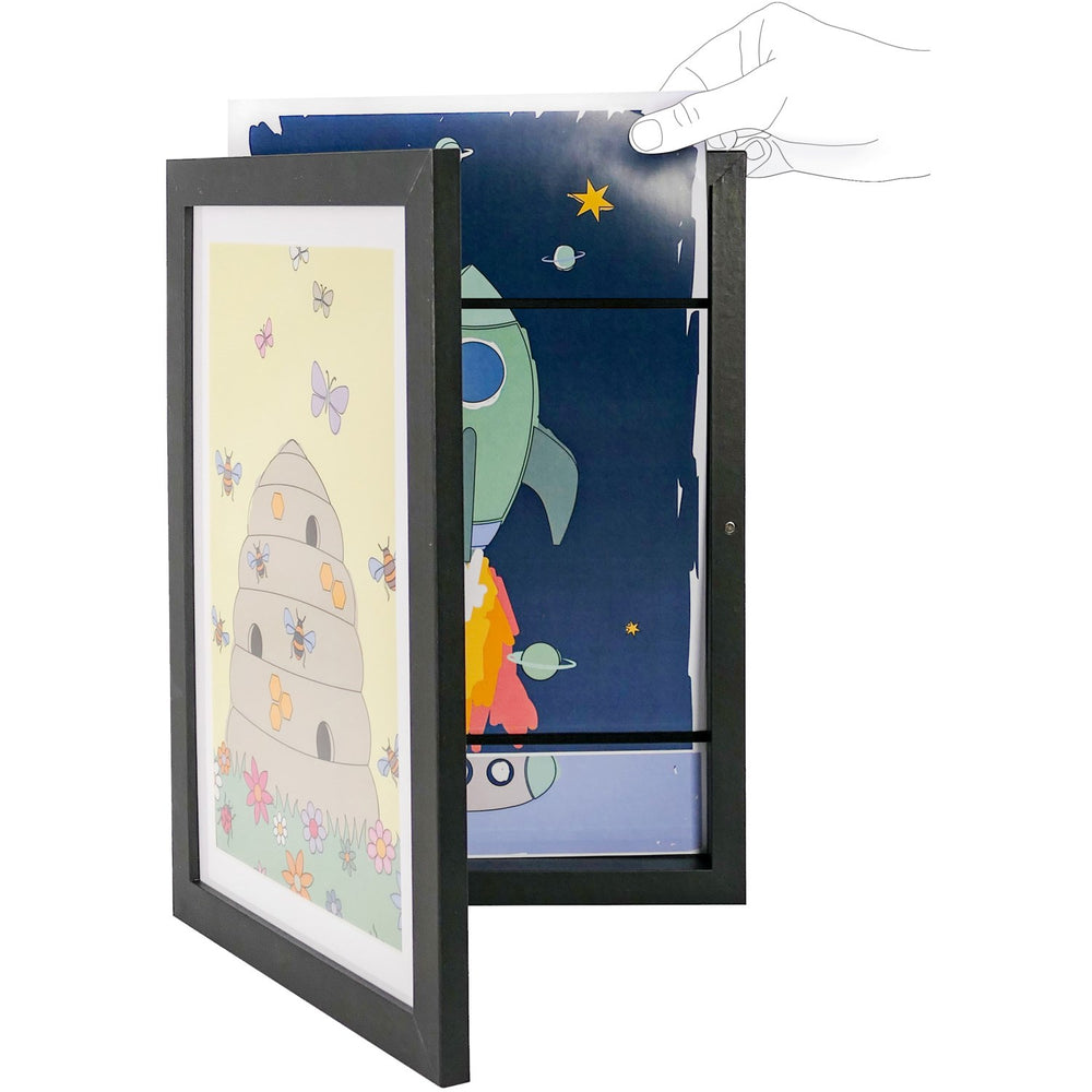 - Drawings that are not displayed can be hidden behind the frame using two elastic bands