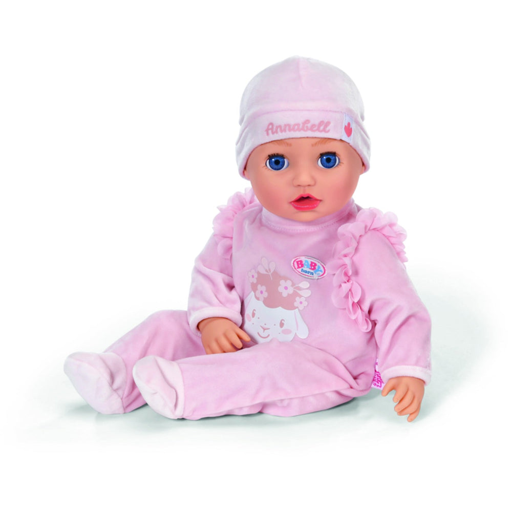 Discover the delightful world of BABY born Annabell, a 43 cm doll designed to bring joy and a touch of realism to playtime. Perfect for children aged 3 and up, Annabell enhances child development through her responsive features. She mimics real baby actions like moving her mouth and eyes when fed with her bottle or pacifier, and even burps after being gently patted.