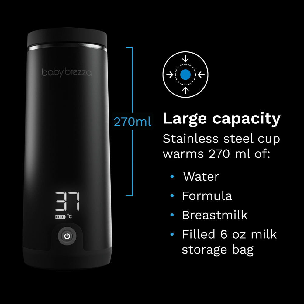 Small bundle of energy on the go? With Baby Brezza's super-fast and portable bottle warmer, mealtime is a breeze wherever you are! Heat the bottles in record time – just 3 minutes to 37°C. Choose from four optimal temperatures for an even and gentle heating that preserves the nutrients in breast milk. The technology is topnotch with advanced sensor and LED display that easily shows the temperature. Large capacity, wireless use, and no leaks – all in a smart, compact design that's easy to carry. Make dining outside the home a stress-free experience with this stylish solution from Baby Brezza.
