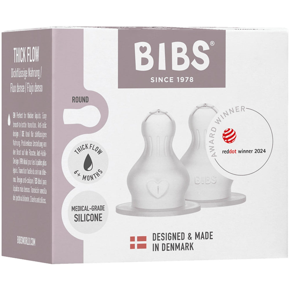 Bibs Baby Bottle Nipple Round Silicone 2-Pack Thick Flow