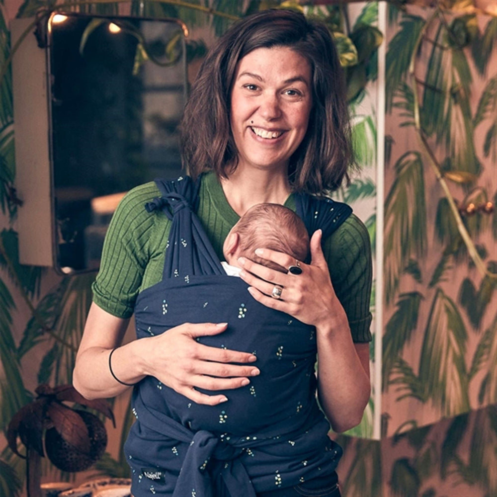 Super nice and practically connected stretchy wrap. Works as a baby carrier, but is in a really nice soft jersey fabric. You simply pull the wrap down over your head, after which it is possible to put the baby down in it. All you have to do is tie a knot at the bottom so that the baby is supported. It is certainly both super comfortable for mother and child. A stretchy wrap is a super good choice, especially for very young babies, as it gives mum her hands free while giving baby a lot of nice close contact.