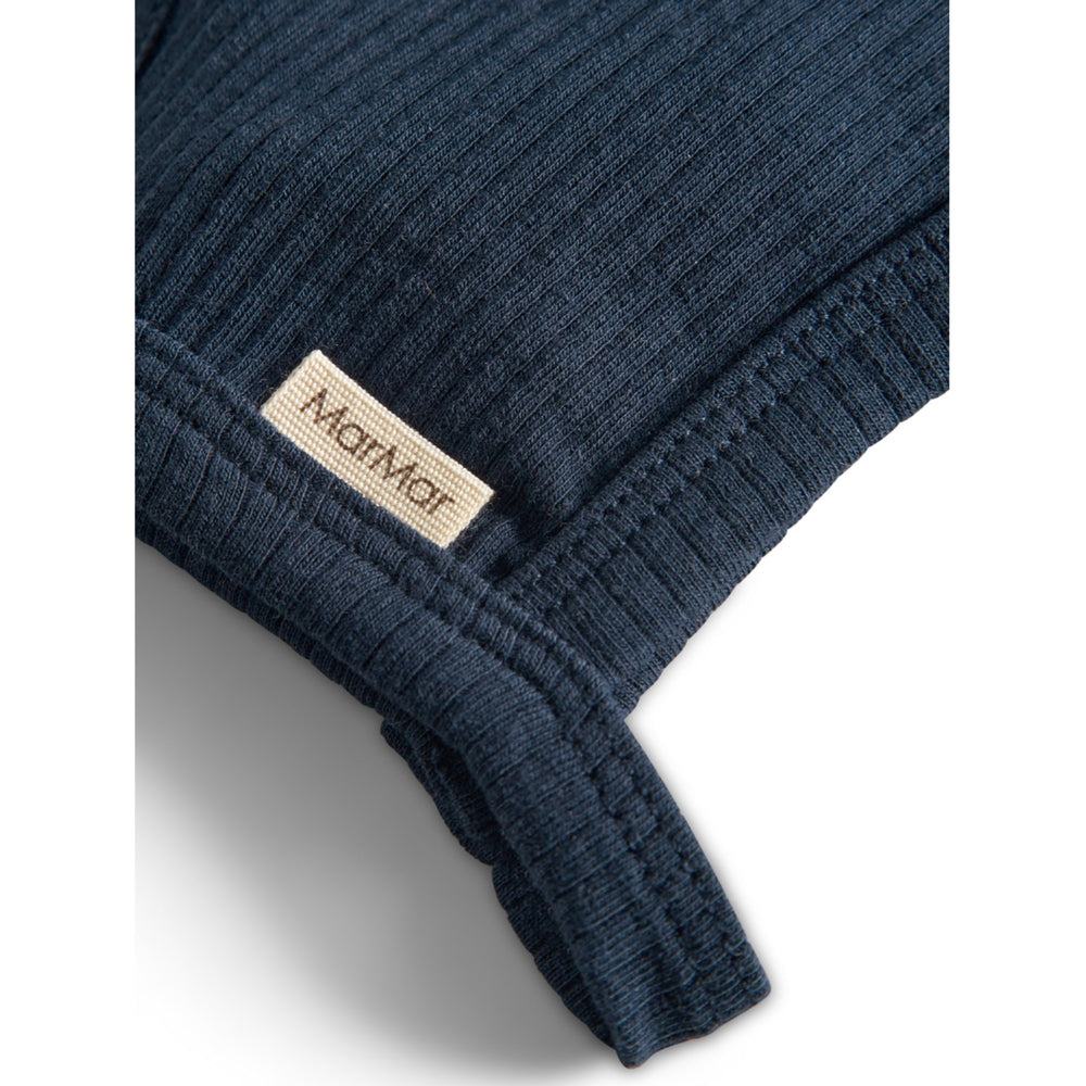 Introducing the MarMar Modal Pilot Navy Hoody Bonnet, perfect for keeping your little one cozy and stylish. Crafted from soft modal fabric, this charming bonnet features a versatile navy hue with a snug pilot-style design. It securely closes with snap buttons, offering two adjustable lengths for a perfect fit. Ideal for gentle care, it blends comfort with durability, ensuring your child stays warm during cooler days. Ideal for outings or peaceful naps, this bonnet is an essential addition to your child's wardrobe. Materials: 47% Modal 48% Cotton (Organic) 5% Elastane Washing instructions: Wash - Machine wash 40°C , Bleach - Do not bleach , Drying - Do not tumble dry, Ironing - medium, Dry Clean - Dry clean possible Certifications: OEKOTEX standard 100, GOTS , Lenzing, SMETA Rib knitted with elastane Soft, stretchy and comfortable to wear Quality that keeps shape and color Wear it with everything Oeko-tex® - Tested for harmful chemicals Modal styles is a favorit since 2008 and is lanched in new colors each season