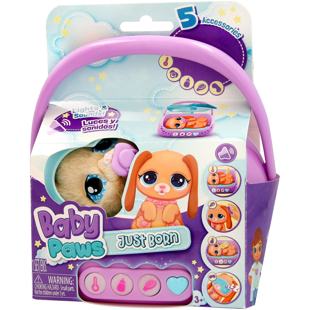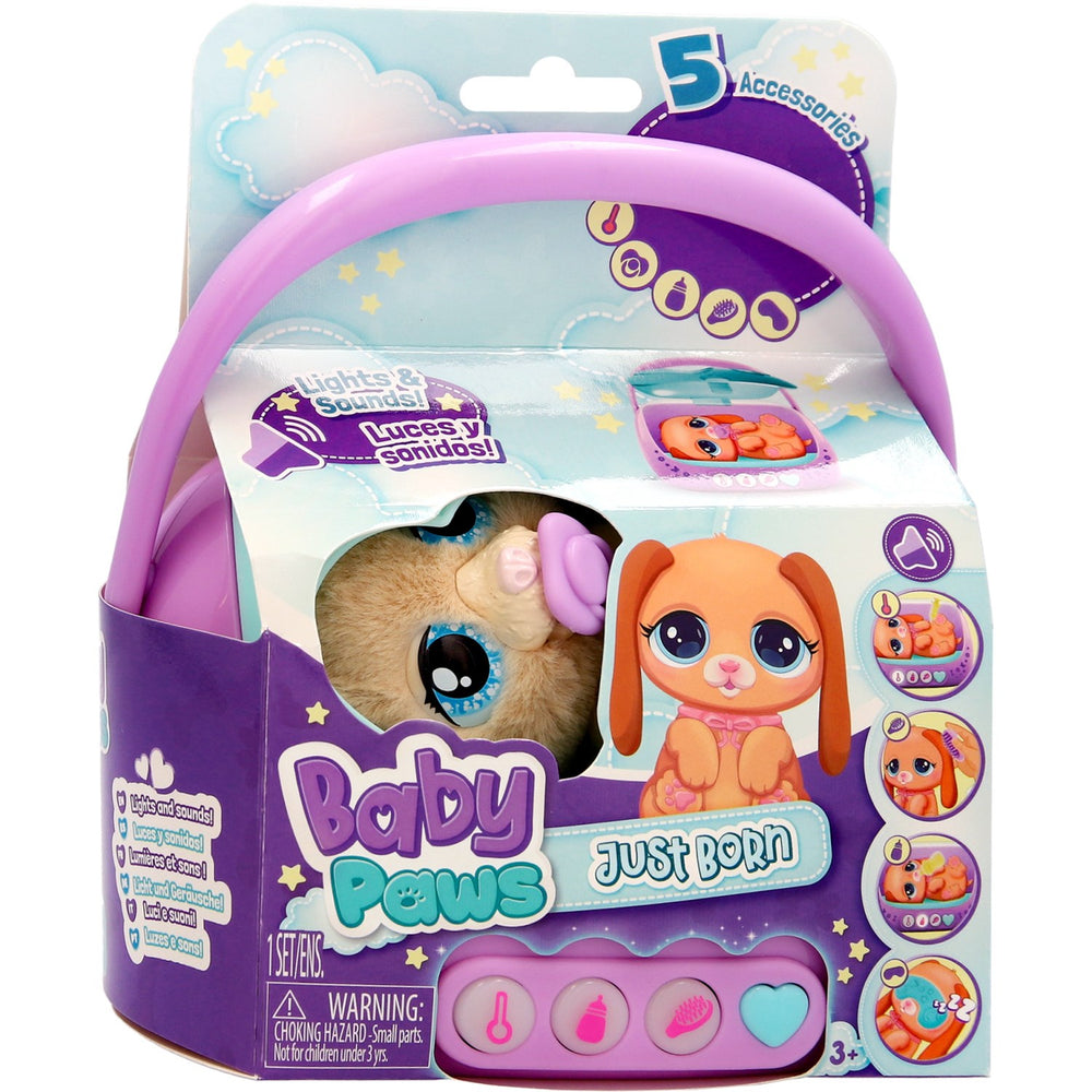 Discover the joy of nurturing with the new Baby Paws Just Born Puppy, designed for little hands and big hearts! This interactive toy comes to life at the press of a heart button, illuminating a small light that indicates your pet's needs, be it food, medicine, or grooming. Ideal for toddlers from 18 months and up, it’s perfect for fostering responsibility and empathy through engaging and educational play. The Baby Paws puppy includes easy-to-use accessories like a feeding bottle, a syringe for medicine, and a brush for care sessions. Portability is a breeze with its special box and practical handle, making it convenient to carry your tiny companion along. Not only does it easily store away, but it also ensures a mess-free experience, thanks to its compact and durable design. For naptime, simply activate the sleep mode with a long press of the button, settle your pup with the adorable sleep mask, and watch as your child enjoys peaceful moments with their new furry friend. This toy not only entertains but also develops nurturing skills while ensuring safety with child-friendly materials. Dive into a world of interactive caregiving with Baby Paws Just Born Pup—a delightful addition to any child’s toy collection!