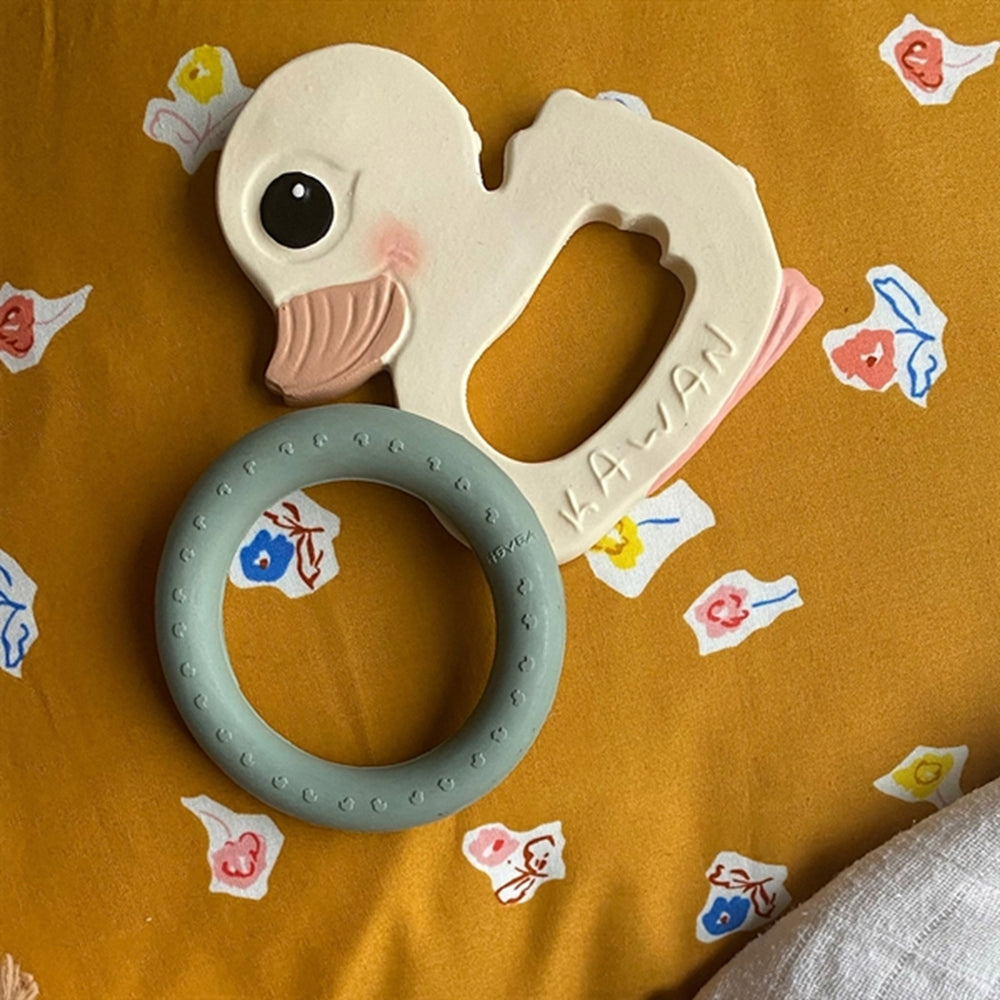 Kawan Teether is the cutest teether shaped like a duck. He is made of 100% natural rubber and completely free of harmful substances. The teether has a soft and stimulating surface that is good for your baby to bite into. Its ribbed beak and feet invite baby to munch on them.