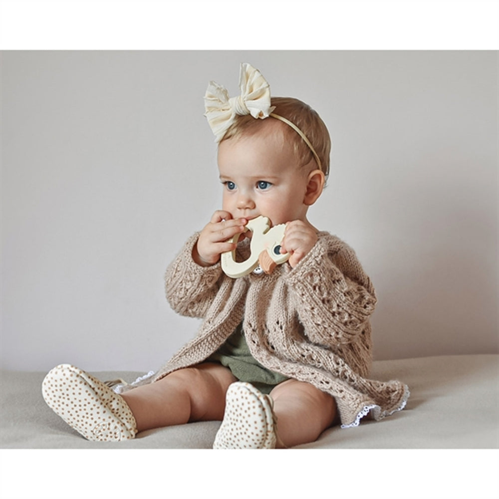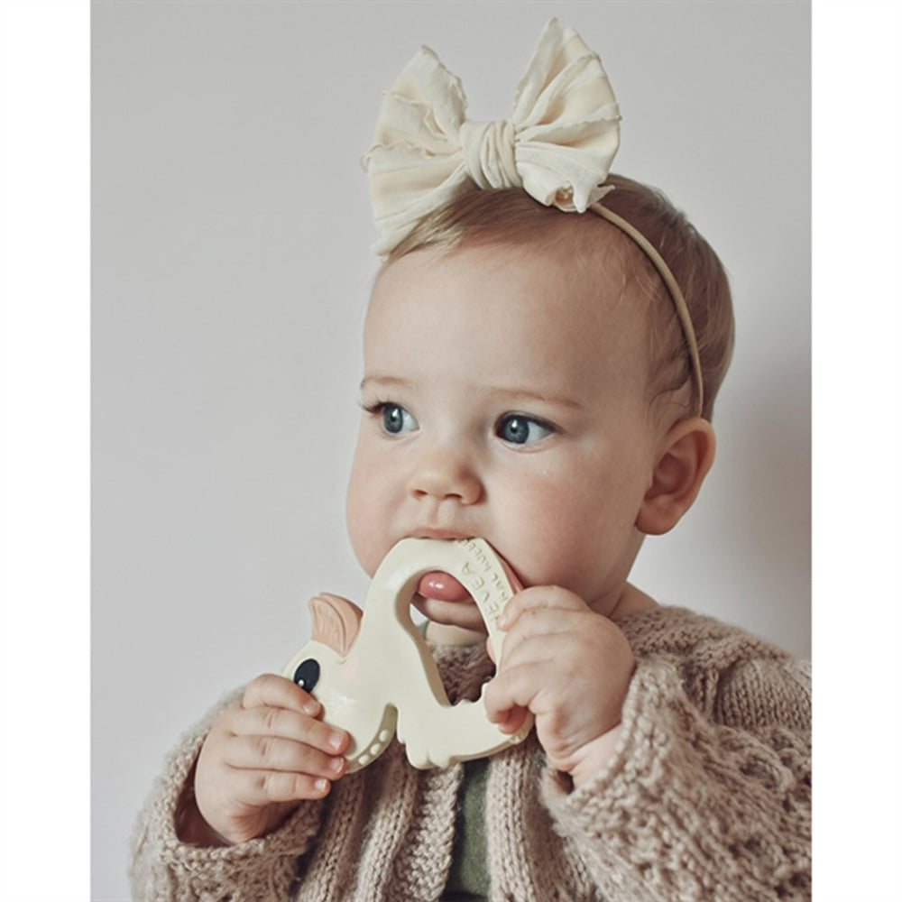 Hevea's teether is designed in one piece, without joints and holes. That way, water can't accumulate inside them. It is therefore a teether that your child can wear for a long time without bacteria developing.