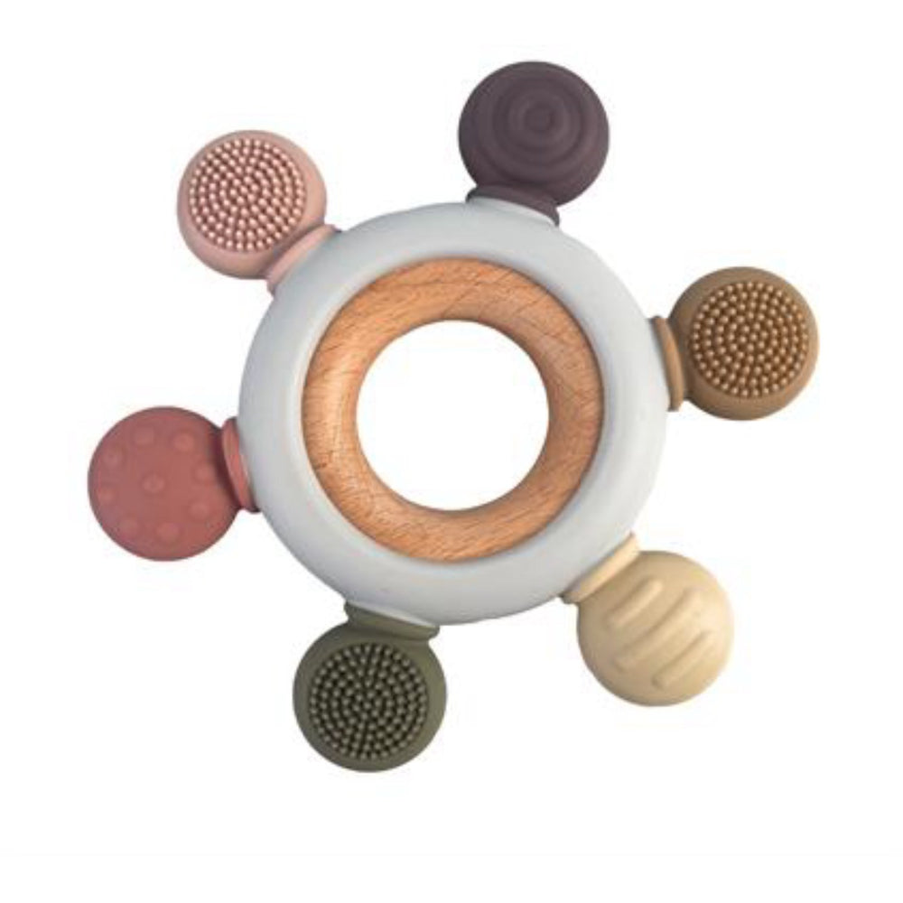 Introduce your little one to the Magni Multicolor Biting Ring, designed with child-friendly silicone and a natural wood ring for safe soothing and exploration. This LFBG-approved teether is not just about vibrant colors but also offers various tactile surfaces to enhance sensory development. Its compact size and easy-to-clean materials make it perfect for on-the-go relief and hassle-free maintenance, ensuring teething is as enjoyable as it is educational for infants. Certifications: LFBG approved