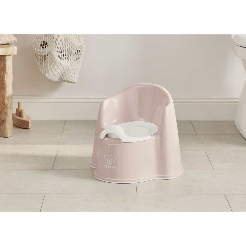 Introducing the BabyBjörn Pink/White Potty, perfect for your little one's early potty training adventures. This comfortable potty chair is designed with soft contours, a high backrest, and supportive armrests to ensure your child's comfort and ease of use. The inclusion of a rubber strip underneath provides stability, keeping the potty securely in place. Ideal for children ready to transition out of diapers, typically between 18-24 months, it helps foster independence with its suitable height for easy sitting and standing. Crafted in Sweden, this durable potty chair is designed to last, making maintenance simple and ensuring it remains an essential part of your child's learning and growth.