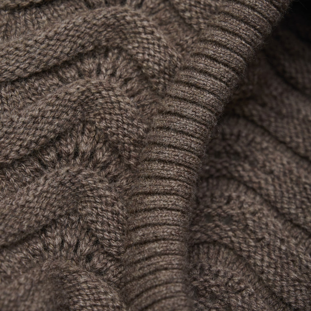 Discover the cozy charm of the HUTTEliHUT Brown Melange Balaclava, crafted from a luxurious blend of 70% Merino wool and 30% cashmere for maximum warmth and comfort. Designed with intricate knit details and a tailored round head shape, this balaclava combines style with practicality. Its appealing brown melange color and smooth pattern enhance any child's winter wardrobe.