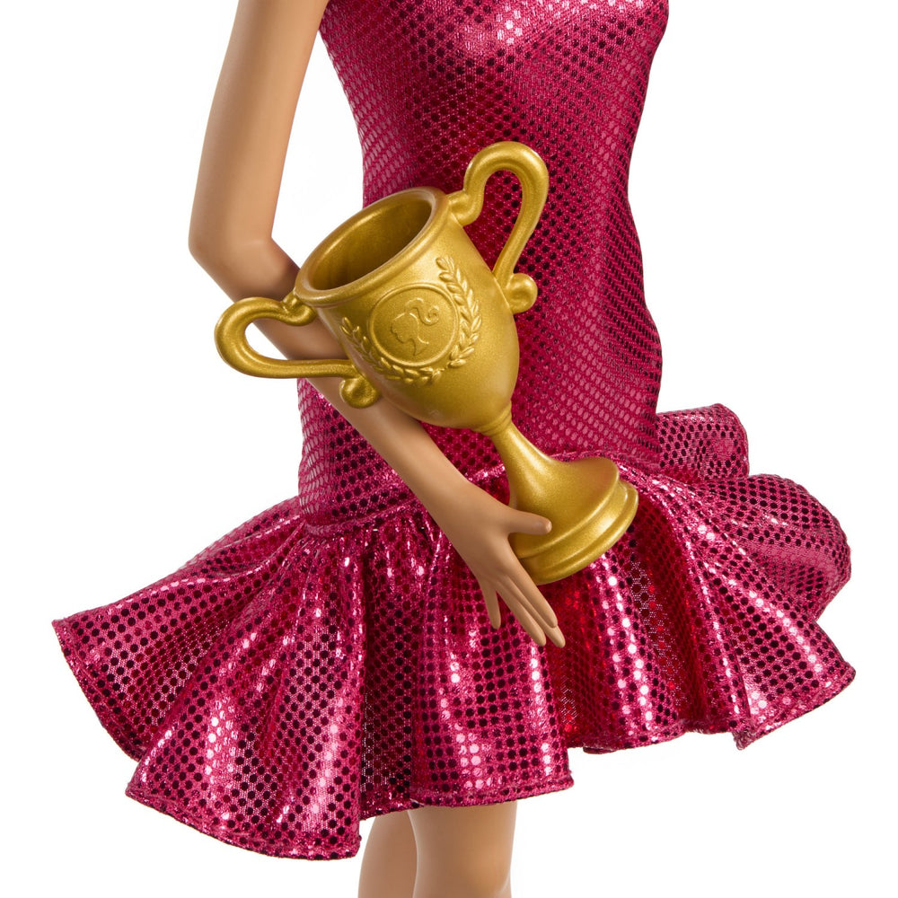 Introduce your child to the glamorous world of dance with the Barbie® Career Ballroom Dancer Doll! Designed for children aged 3 and up, this elegantly dressed Barbie comes adorned in a glittery red dress with ruffle trim, perfect for exploring a variety of dances like the foxtrot and tango. Her golden strap heels and coordinating earrings complete her dazzling ensemble. With a trophy accessory included, children can imagine thrilling dance competitions and victories. Though the doll requires assistance to stand, her engaging design and accessories foster creativity, motor skills, and safe, imaginative play. Easily portable, this Barbie® ensures that the fun can go wherever your child goes, and its durable design makes maintenance straightforward, ensuring lasting enjoyment.