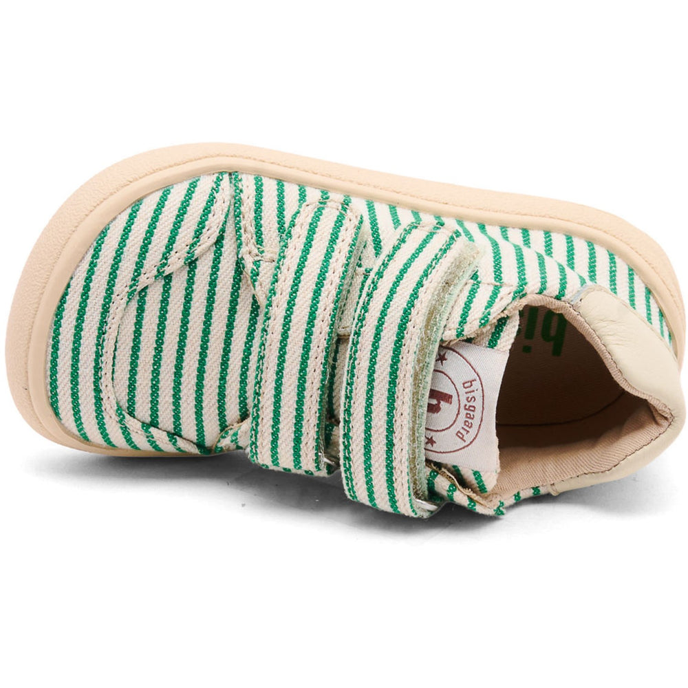 Introducing the Bisgaard Green Barefoot Skipper First Step Shoe – a delightful choice for your little one’s first adventures. These prewalkers are crafted from LWG-certified leather, ensuring an eco-friendly approach right from the start. Boasting a vibrant striped design, they bring a sporty yet playful element to any outfit. Designed with a child's foot health in mind, they feature a flat sole without a heel drop to promote natural walking, while a wide toe box supports healthy foot development. The insoles, made from recycled foam with microfiber, offer excellent shock absorption and breathability, making these shoes not only stylish but incredibly comfortable and durable. Perfect for daily wear and rigorous playtimes, these sneakers combine functionality and fashionable flair, ensuring your child steps out in style and comfort. Closure: Velcro Insole material: Cotton 100% Lining: Cotton 100% Outer material: Textile 95% / Leather 5% Outsole material: Rubber 100%