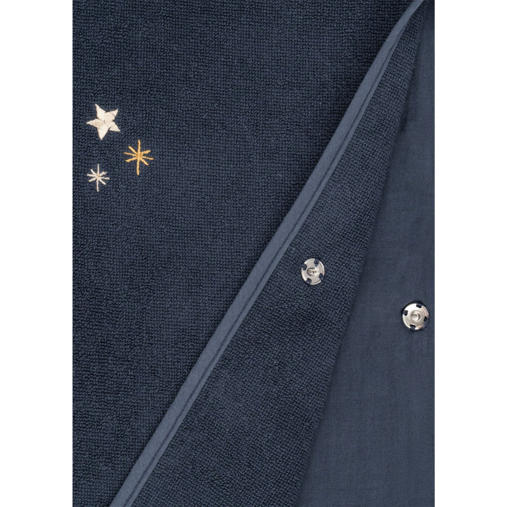 Add a touch of cozy delight to your child's bath time with the Konges Sløjd Blue Nights Terry Poncho. Expertly crafted from 100% organic cotton, this adorable hooded poncho provides a super soft and snug wrap for little ones after splashing around. With rigorous attention to safety and quality, it boasts prestigious certifications such as GOTS (Global Organic Textile Standard) and OEKO-TEX® STANDARD 100, class 1, ensuring it's free from harmful substances and gentle on delicate skin.