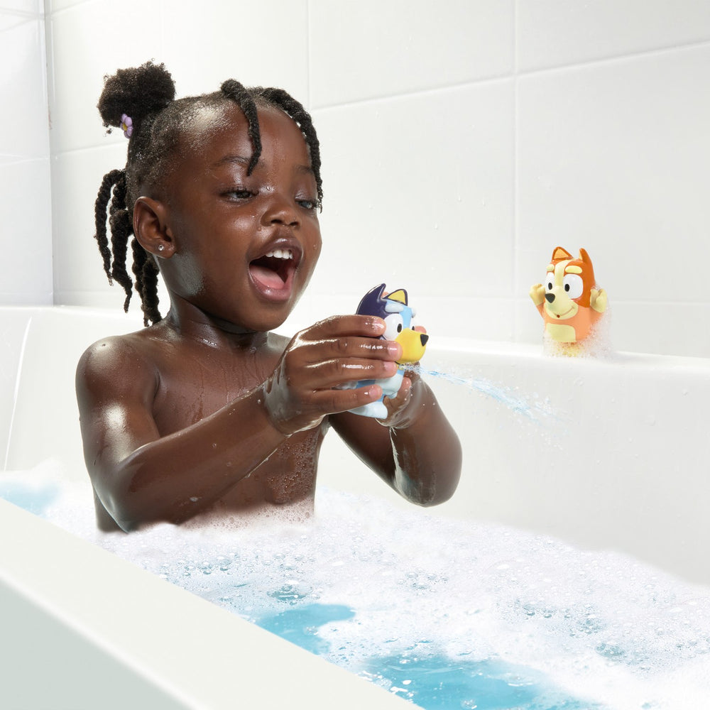 Dive into fun with the Toomies Bluey Bath Sprayers, perfect for transforming bath time into a playful splash-fest! These toys not only feature Bluey and Bingo from your child's favorite TV show but are designed with little hands in mind. Easy to use, your little ones can simply submerge the figures, give them a gentle squeeze, and delight in the water antics that follow. Besides being a source of endless entertainment, these bath sprayers help enhance fine motor skills, boost eye-hand coordination, and encourage the development of water bravery. Ideal for both individual play and sharing with friends, the durable design ensures they're easy to clean and store, making them a hassle-free addition to any bath routine. Watch as your child's imagination blossoms with each bath, recreating cherished scenes or inventing new adventures with Bluey and Bingo! Age: 18 months+