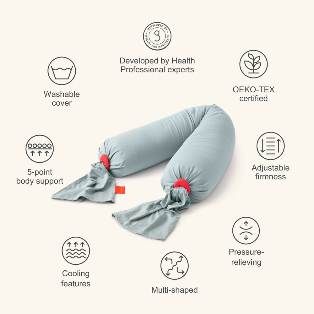 Crafted with adjustable firmness controlled by its unique BPA-free silicone "Pebbles," the pillow ensures customized comfort throughout every stage of pregnancy and even post-pregnancy. Its extra-long design supports your entire body, while the versatile shape accommodates various sleeping positions ensuring you get the rest you need.