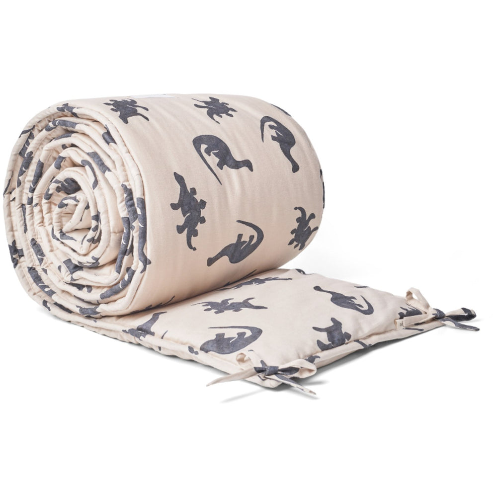 Explore peaceful nights with the Mono Dino Lotus Bed Bumper from That's Mine, expertly crafted to cushion your little ones from bed edges while securing their pacifiers close. This safety-centric bumper boasts breathability with its recycled polyester design, ensuring a soft yet breathable barrier should your child nestle against it.