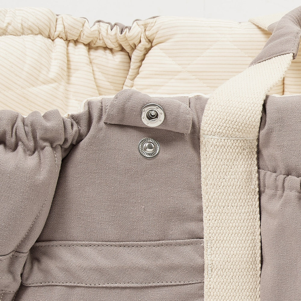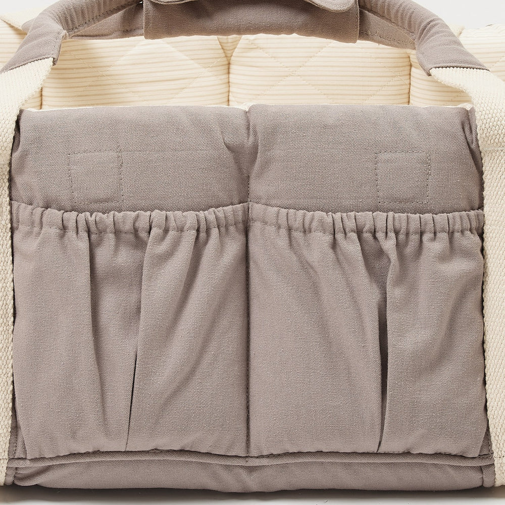 Discover the comfort and safety of the Copenhagen Colors Dark Grey W. Cream Solid Stripe Organic Multifunctional Babylift Vol. 2, a premium choice for the modern, eco-conscious family. Constructed from 100% organic materials, this second version of our beloved babylift offers enhanced features without sacrificing the classic comforts. It's equipped with a water-repellent cotton exterior and lined with super soft cotton poplin, ensuring a cozy, hypoallergenic environment for your little one.