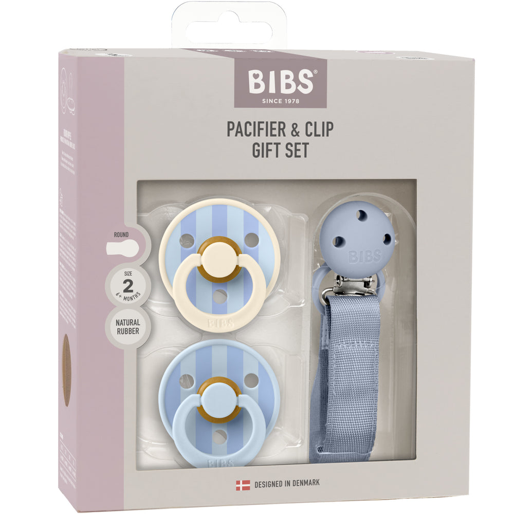 Bibs Dusty Blue Pacifier & Clip Gift Set Pin & Block Latex