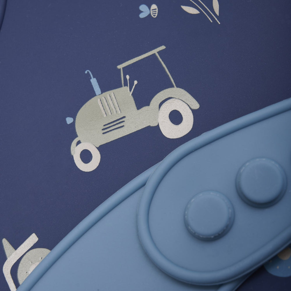 Discover the practical CeLaVi Blue Heaven silicone bib, ideal for children's meals. These one-size bibs come in a 2-pack with charming prints and adjustable snaps for easy fitting and comfort. The deep front pocket on the bib is perfect for collecting spills, making cleaning easier. Available in designs that suit both boys and girls, they are not only practical but also stylish. Safe and easy solution for meals!