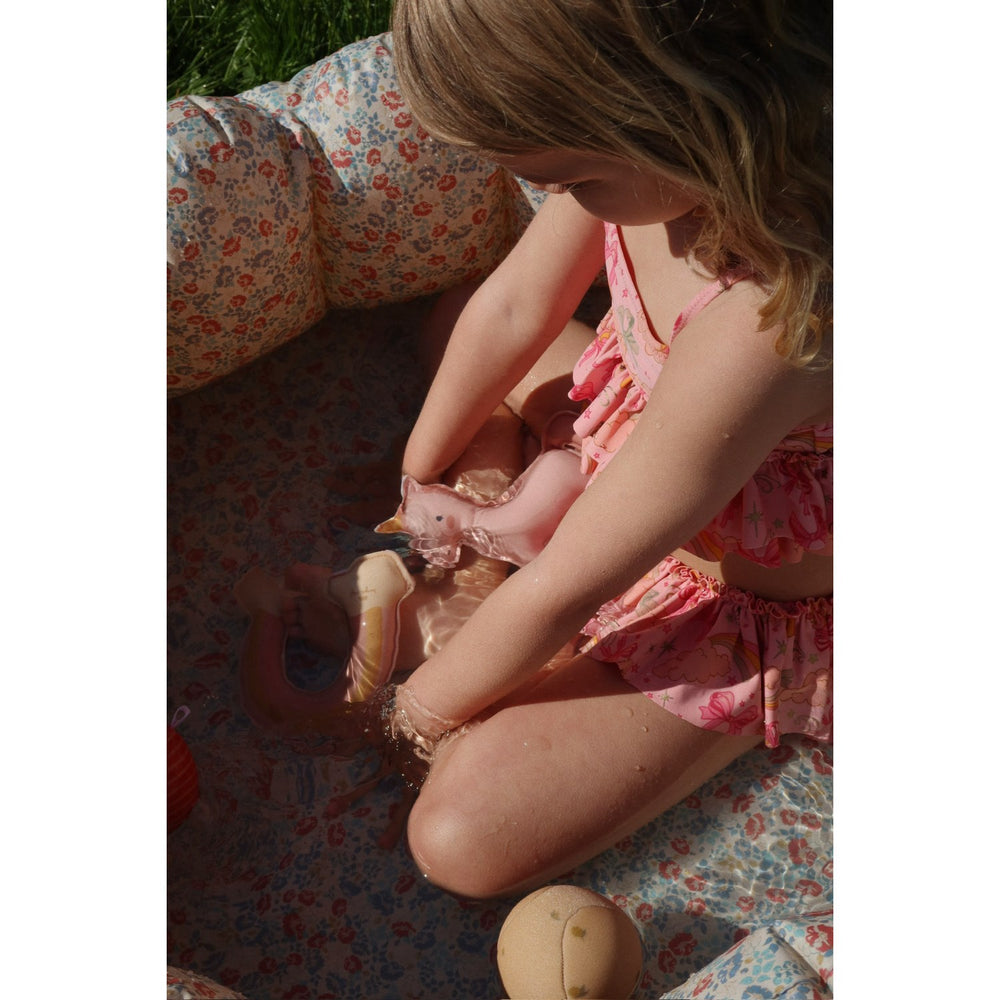 Dress your little one in the Konges Sløjd Rainbow Bow Manuca Frill Bikini, designed for both style and sustainability. Crafted from 80% GRS-certified recycled polyester and 20% elastane, this charming set features frilly details on both the top and bottoms, ensuring comfort without compromising on cuteness. It's OEKO-TEX® STANDARD 100, class 1 certified, promising safety and superior quality. Perfect for sunny beach days or splashing around in the pool, this bikini combines delightful design with eco-conscious craftsmanship.