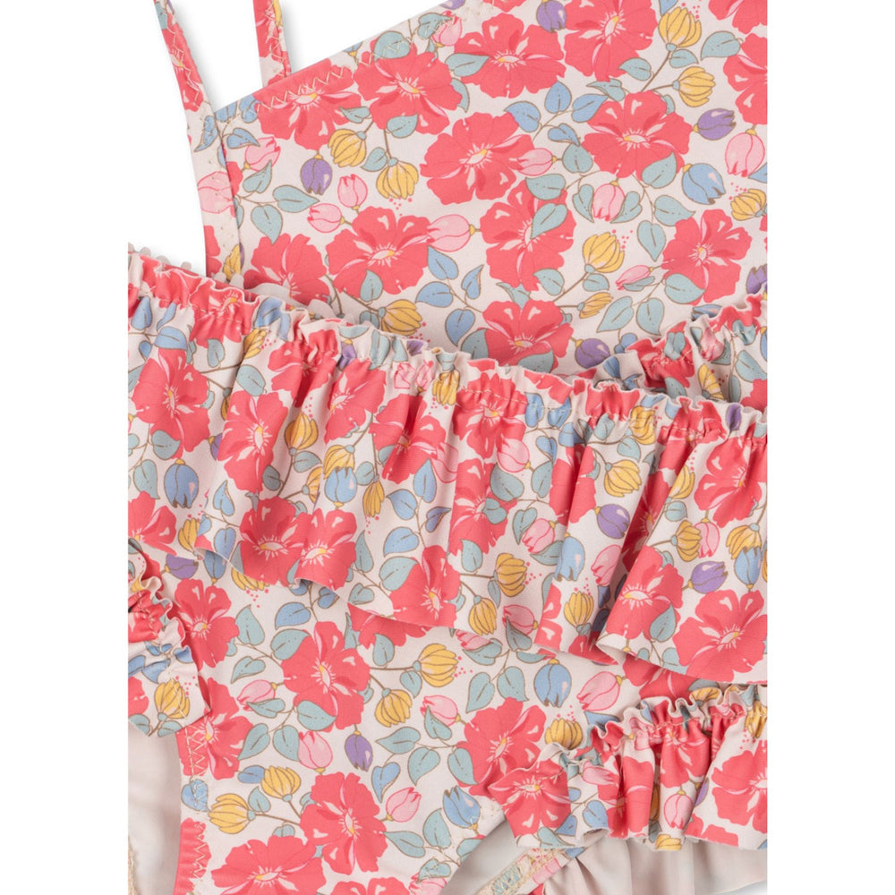 Introducing the charming Konges Sløjd Manuca Frill Bikini in Rose Anglaise – perfect for your little one's swim adventures! Crafted with 80% recycled polyester and 20% elastane, this soft bikini set features delightful frill details on both the top and bottoms, ensuring style and comfort. It boasts vibrant colors and a playful pattern that stands out. The fabric is not only durable and easy to care for but also GRS-certified, ensuring it meets the highest environmental standards. Ideal for endless fun in water, its snug fit ensures it stays in place while providing the freedom to move and play.