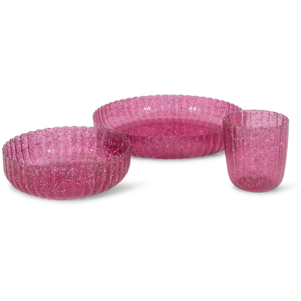Delight in mealtime magic with the Konges Sløjd Sparkling Sangria Dinner Set. Crafted with dazzling glitter, this set includes a plate, small bowl, and cup, designed to captivate and entertain. Its sturdy construction ensures durability, while the fun, sparkling design stimulates your child's imagination during every use. Perfect for everyday dining, it's easy to clean and organize, making both mealtime and cleanup a breeze for parents and fun for kids.