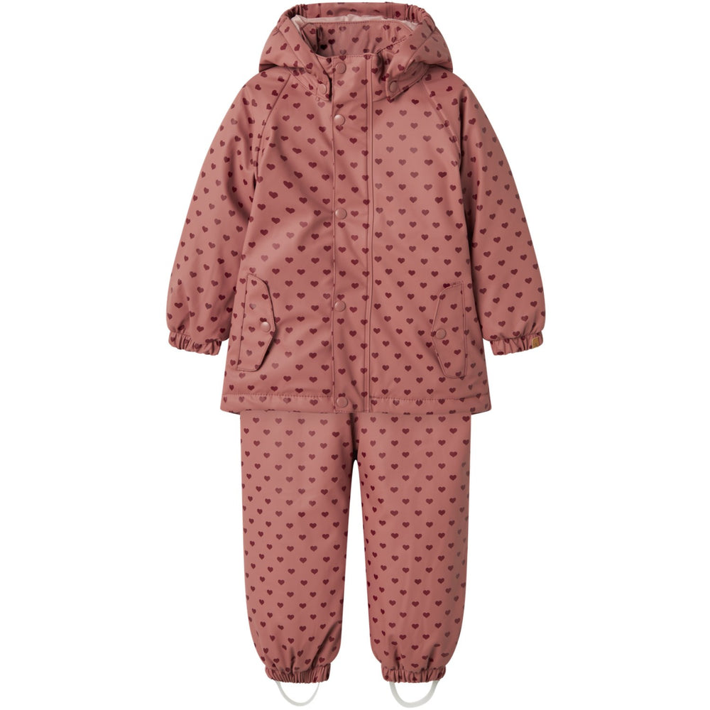 Dress your little one for adventure with the Lil'Atelier Withered Rose Nmfladry10 Set Aop Fo Lil, designed to make rainy days fun without worrying about the wet and cold. This rain set features a striking print across its entire surface, paired with a palette that echoes nature’s own hues. Crafted with a high waterproof rating of 10,000mm and welded seams, it ensures complete waterproof protection, making puddle-jumping an absolute delight. It includes thoughtful details like a detachable hood for varying weather conditions and safety, and a zip guard to protect delicate skin. Comfortable elements such as elasticated cuffs, adjustable leg openings, and durable rubber foot loops promise a snug and secure fit. Easy to handle, the set features both zip and press stud fastenings and comes with handy side pockets for all the little treasures they might find. Ideal for explorative, energetic toddlers and children who love the outdoors, this rainwear set combines practicality with playful style, ensuring they remain cozy, dry, and stylish in every weather escapade. The care for this item is hassle-free, ensuring more time spent outdoors and less on maintenance.