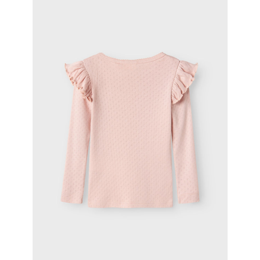 Dress your little one in the charming Lil'Atelier Peach Whip Rachel Nan Slim Blouse. This blouse is crafted from soft, stretchy jersey that ensures comfort while allowing ample freedom of movement. It features a round neckline, long sleeves, and delicate frills, adding a trendy touch. Ideal for layering, this slim-fit top comes in a soft peach hue with intricate details, making it both stylish and functional for everyday wear. Designed to maintain its shape and texture, it's an easy-care garment that pairs beautifully with a variety of bottoms for a complete, fashionable look.