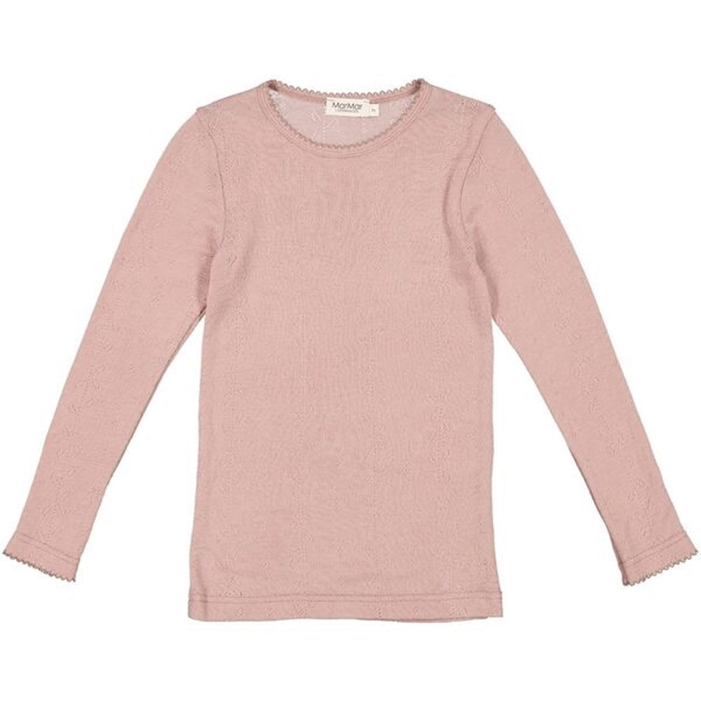 Discover the charm of MarMar's Wool Pointelle Burnt Rose Tamra T-shirt LS, perfectly suited for your little one's wardrobe. Crafted from soft, breathable wool in a delicate pointelle knit, this T-shirt ensures both comfort and style with its lovely burnt rose hue and long sleeve design. The subtle pattern adds a touch of elegance, making it ideal for both casual and dressy occasions. Easy to care for and designed to last, it's a practical addition to any child's collection. This piece not only promises a cozy fit but also embraces your child in warmth and style throughout the season.