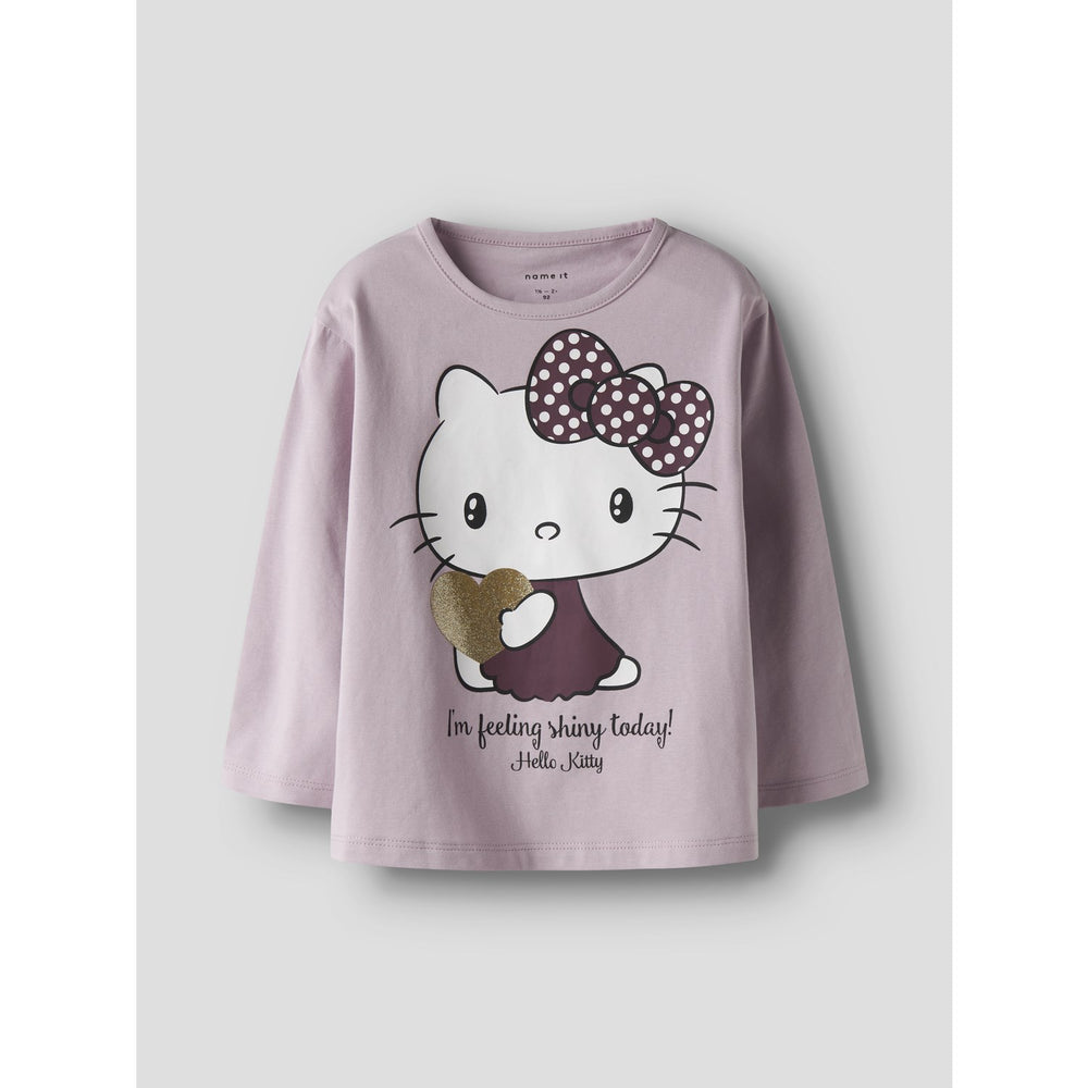 Brighten up your little one's clothing collection with the Name It Keepsake Lilac Nmfobba Hellok Ls Nreg Top Box Sky. This charming top boasts a delightful glitter print with a rubber texture for a soft touch, featuring the beloved Hello Kitty. Crafted from lightweight jersey, it ensures comfort, paired with a stretchy quality that allows unhindered movement, ideal for active kids. With a classic round neckline and long sleeves, it offers a regular fit that's both stylish and practical for various occasions. The easy-care fabric ensures hassle-free maintenance, making this top a perfect blend of fashion and function for everyday adventures and beyond. Whether dressing up for a party or enjoying everyday play, this top keeps your child looking cute and feeling comfortable.