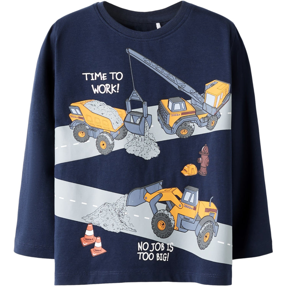 Introducing the Name It Navy Blazer Nmmofek Tonka LS Nreg Top: ideal for enhancing your child's wardrobe with its cool, versatile design. This top is crafted from soft, lightweight jersey fabric that ensures comfort and mobility. Its classic round neck and long sleeves make it suitable for both everyday activities and special occasions. The distinctive rubber print adds a touch of fun without sacrificing feel, ensuring it's both appealing and gentle on your child's skin. This top comes in a regular fit, providing ample freedom of movement. Easy to care for and fire-safe, it's a practical and stylish addition to any young wardrobe. Fit: Regular Materials: 95% Cotton - Organic, 5% Elastane Materials and care: Wash with similar colors Washing instructions: Maximum Washing Temperature 40°C - Gentle Process Extra: The main material in this product contains a minimum of 50% organic cotton. Organic cotton is grown without the use of harmful chemicals. Organic cotton farming protects natural resources and biodiversity.