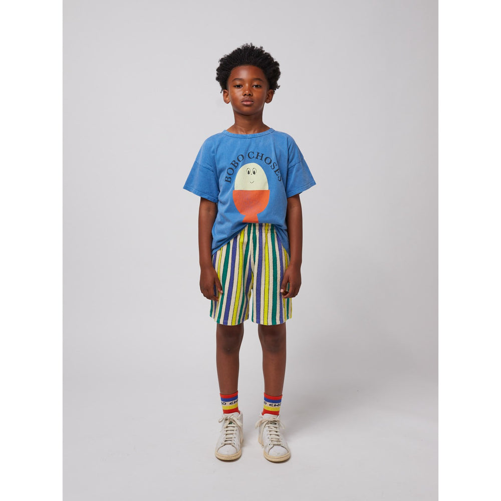Dress your little one in the vibrant Bobo Choses off-white Bermuda shorts, crafted from plush terry cloth and adorned with cheerful multicolor stripes. Designed to offer both comfort and style, these shorts feature a relaxed fit perfect for active play. Favored for their easy care and durability, they promise to be a staple in your child's wardrobe. Ideal for both casual outings and playful days at home!