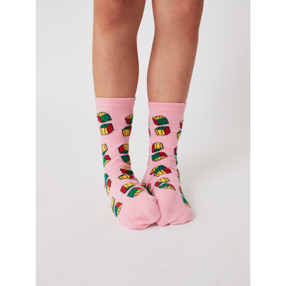 Bobo Choses Pink Dices All Over Short Socks - 23-25 is backordered and will ship as soon as it is back in stock.