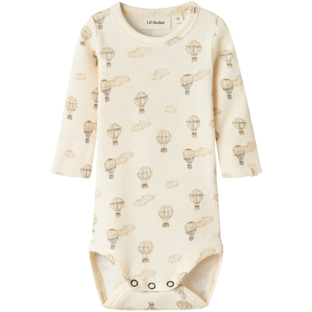 Dress your little one in the charming Lil'Atelier Turtledove Air Balloon Gavo Emo Slim Body Noos, designed to blend everyday practicality with trendy style. Crafted from soft, stretchy jersey, this bodysuit offers a gentle touch with ample freedom of movement, ensuring your child feels comfortable all day long. Featuring a grandad neck and long sleeves for a stylish flair, it comes adorned with a delightful air balloon print spread evenly across the fabric. The bodysuit is equipped with convenient press stud fastenings at the shoulder and bottom to simplify dressing and diaper changes. Available in cozy fit, it also includes a label for quality assurance. Remember to keep this garment away from fire and handle with care for lasting use. This piece not only keeps your child comfortable but also adds a touch of whimsy to their wardrobe.