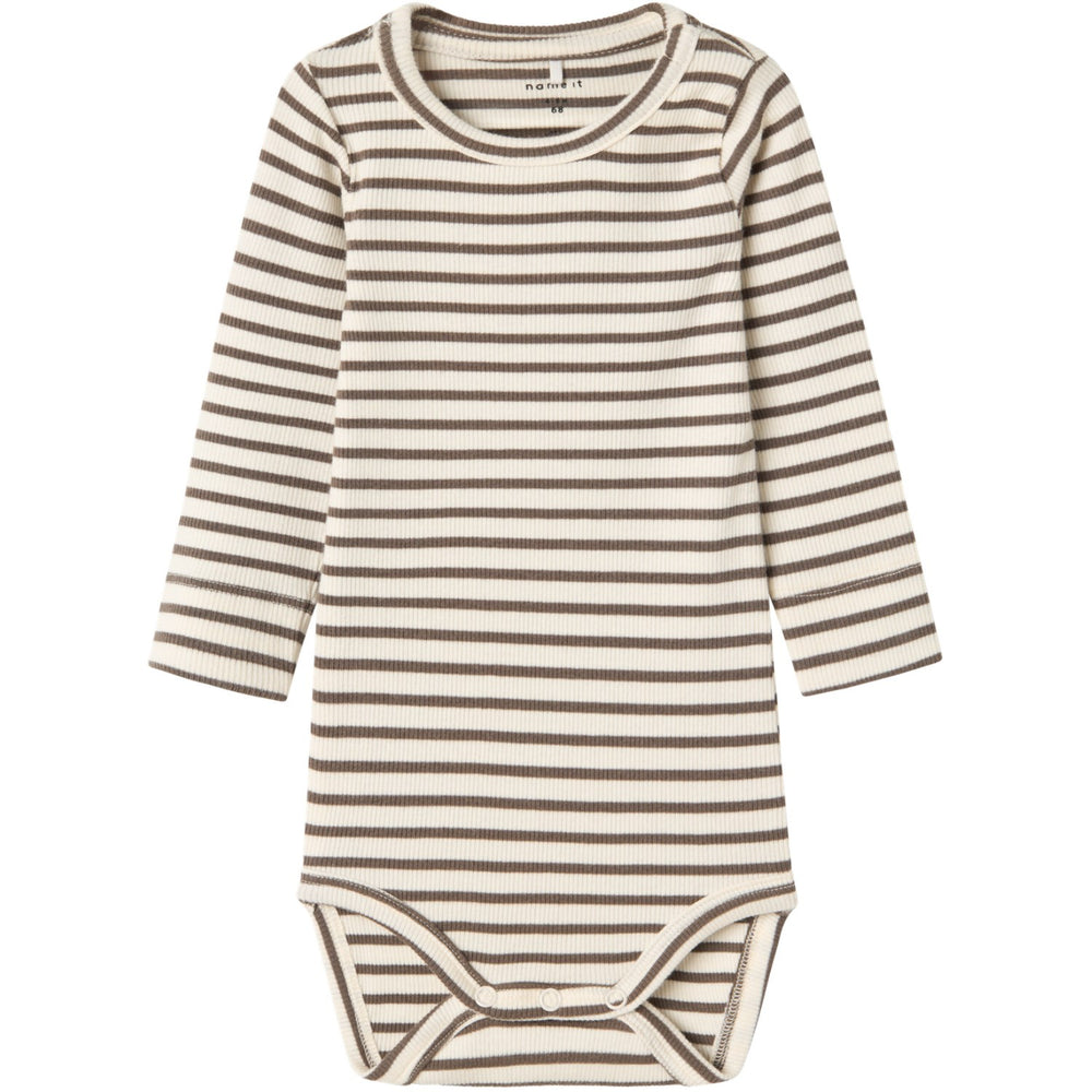 Dress your little one in the Name It Bungee Cord Bani Body Noos bodysuit, featuring a snug rib knit with vertical stripes. This bodysuit ensures a comfy fit thanks to its good elasticity and timeless design. It comes with long sleeves and a convenient press stud fastening at the bottom, making changes quick and easy. Perfect for layering or wearing alone, this is a stylish and practical choice in children's wear. Closure: Press stud fastening Materials: 57% Organic Cotton, 38% Modal, 5% Elastane Materials and care: Wash with similar colors Washing instructions: Maximum Washing Temperature 40°C - Normal Process