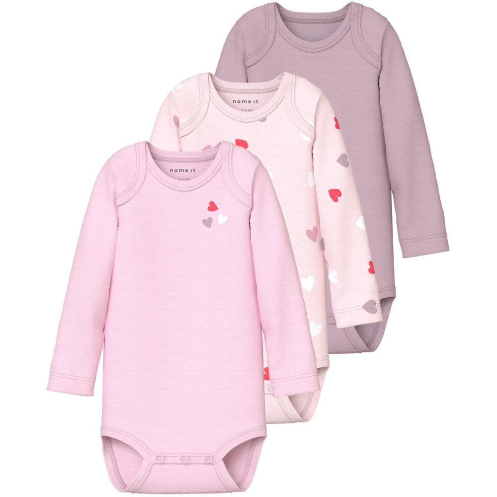 Discover the comfort and style in the Name It Carinaria Nbfbody 3P Ls Carinaria Heart Noos bodysuits, an adorable addition to your little one's clothing essentials. Crafted from rib knit material, these bodysuits feature a striped pattern and excellent elasticity, ensuring a snug yet comfy fit. The American neckline and long sleeves offer a classic look while the press stud fastening makes dressing hassle-free. Offered in a practical 3-pack, each bodysuit is adorned with a charming all-over heart print, adding a playful touch to the design. Ideal for all seasons, they are also easy to care for and maintain. Perfect for daily wear, these bodysuits keep your child comfortable and stylish while ensuring safety with fire-resistant material.