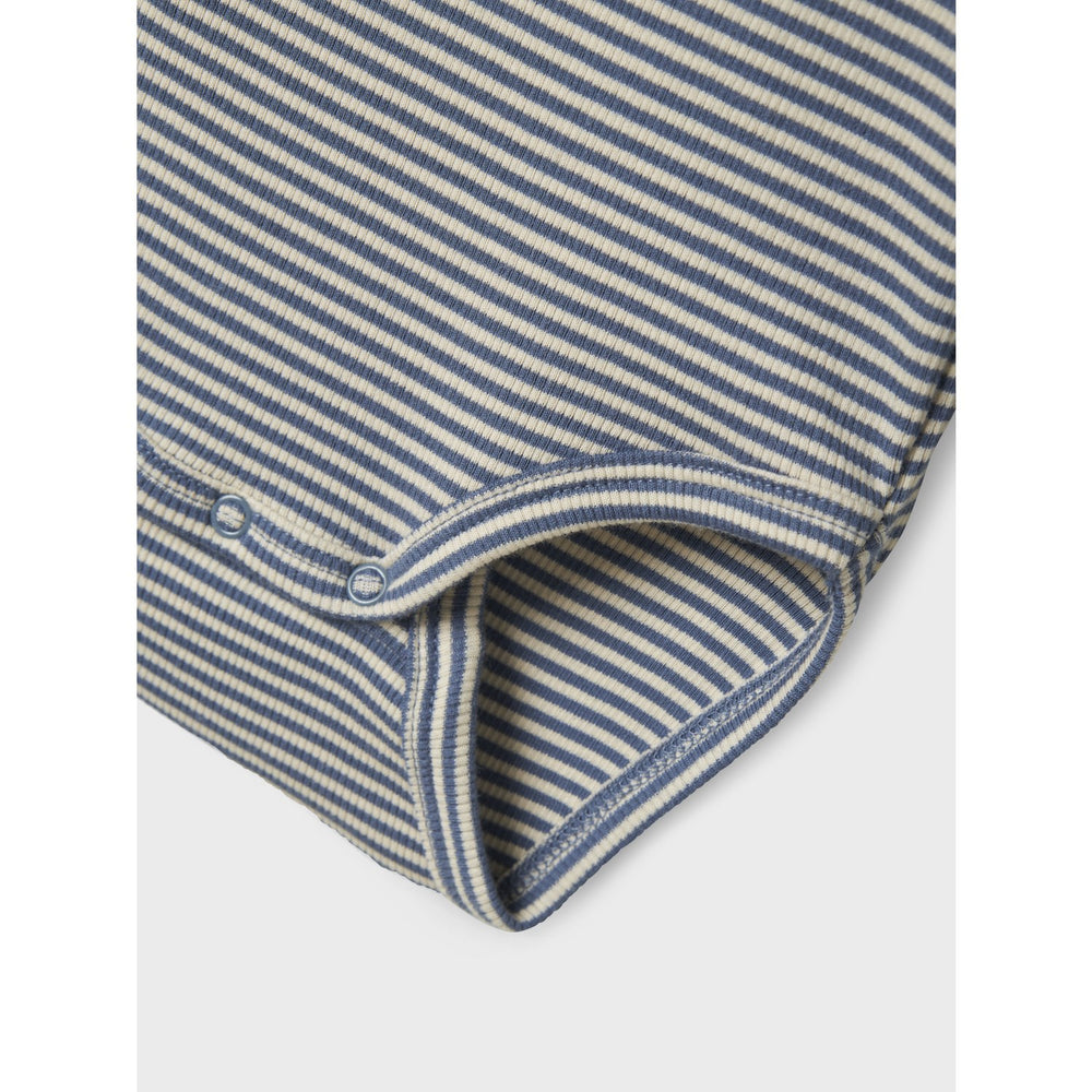 Introducing the Name It China Blue Berro Body, an essential piece perfect for assembling a comfortable yet trendy outfit for your child. Crafted with a soft fabric, this charming bodysuit features a round neck, long sleeves with fold-up cuffs, and convenient press stud fastening for easy dressing. Adorned with subtle button details and available in soothing China blue, this piece combines safety with style, sporting a fire warning for added precaution. Ideal for daily wear, it offers both durability and comfort, making it a must-have in your little one's wardrobe.