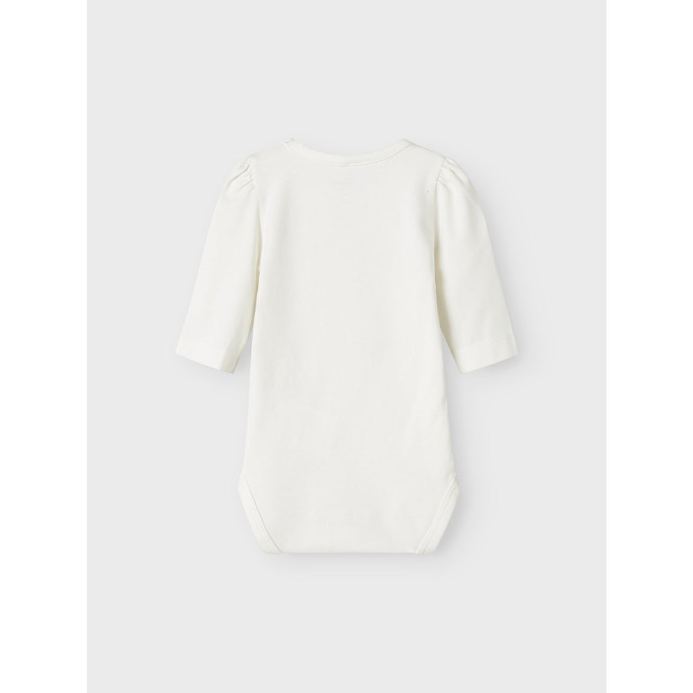 Discover the charm of our Name It Cloud Dancer Nbfoasa Ls Body Box, a delightful choice for your little one's daily attire. Crafted from soft, stretchy jersey, this bodysuit offers unparalleled comfort with cozy long puff sleeves and a gentle round neck, enabling free movement for your child. Available in a light, engaging color, the design features a convenient press stud fastening for easy dressing. Please note, it is essential to keep this garment away from fire. Ideal for all-season wear, it's a must-have for any child's wardrobe, blending comfort with fetching style.